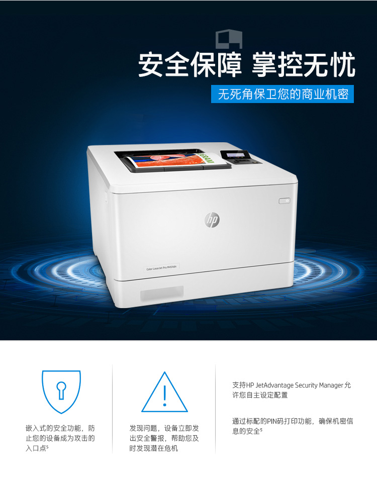 商品名称: 惠普/HP M454dn A4单功能 彩色激光打印机 自动双面打印 有线连接 白色