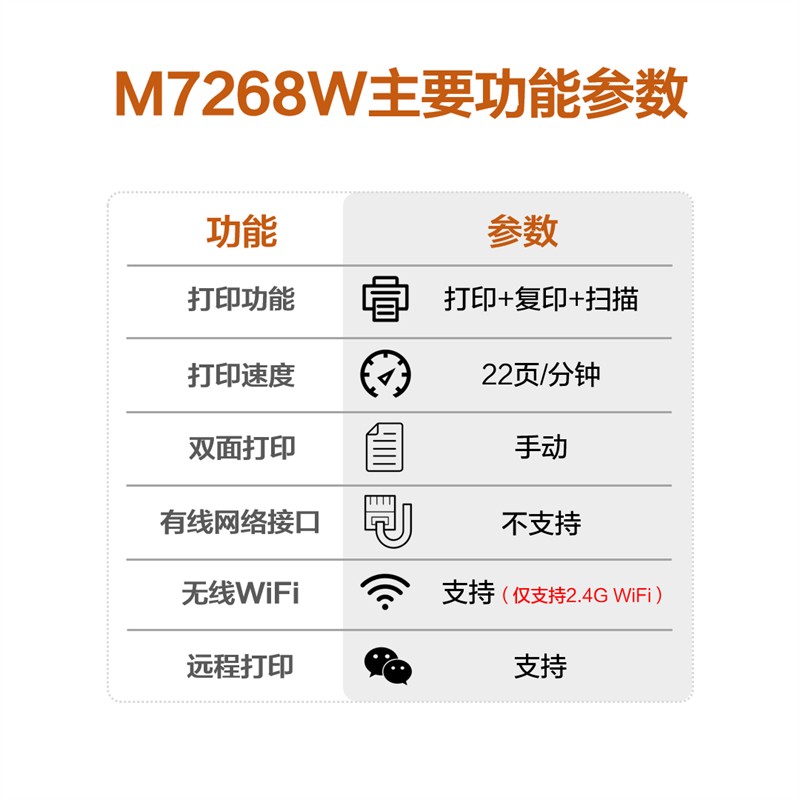 商品名称: 联想/lenovo 小新M7268W 黑白激光多功能一体机 无线WiFi打印 白色
