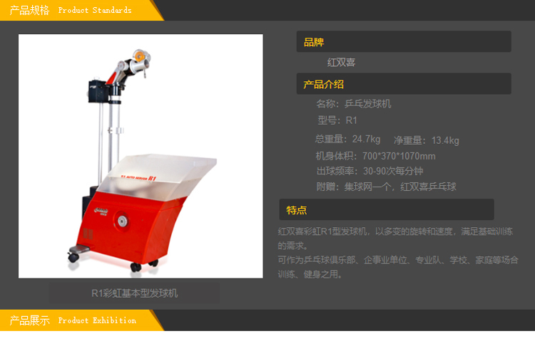 商品名称: 红双喜 R1 彩虹基本型发球机 红色(单位:台)