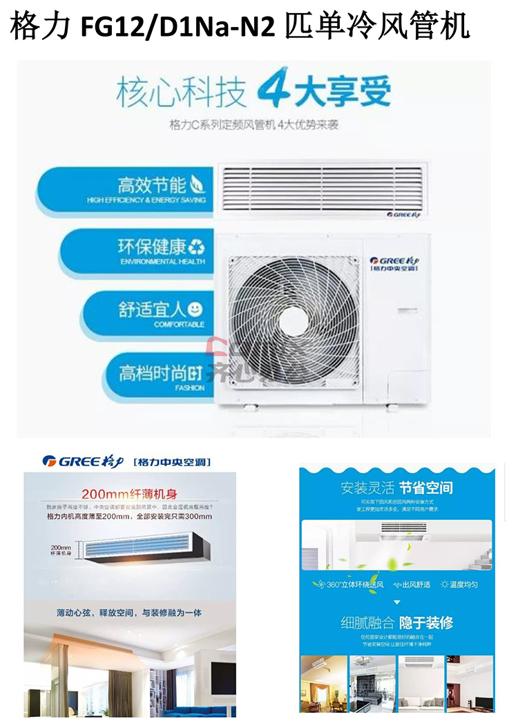 格力 FG12/D1Na-N2 5匹单冷风管机套装(含加长铜管*10m/电源线(含线管)*15m/保温管*15m/PVC排水管*15m/百叶换气扇*2/冷媒R410a*1/内机外机支架*1/高空*1/打孔*1)(单位:套)