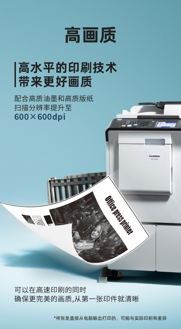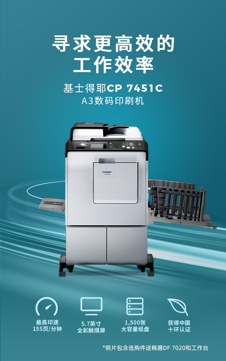 办公设备  > 打印/复印设备  > 复合机/一体机  >  基士得耶/GESTETNER  >  基士得耶 CP 7451C 速印机数码印刷机(主机+盖板+1袋油墨+1卷版纸+工作台+1年保修)单位:台