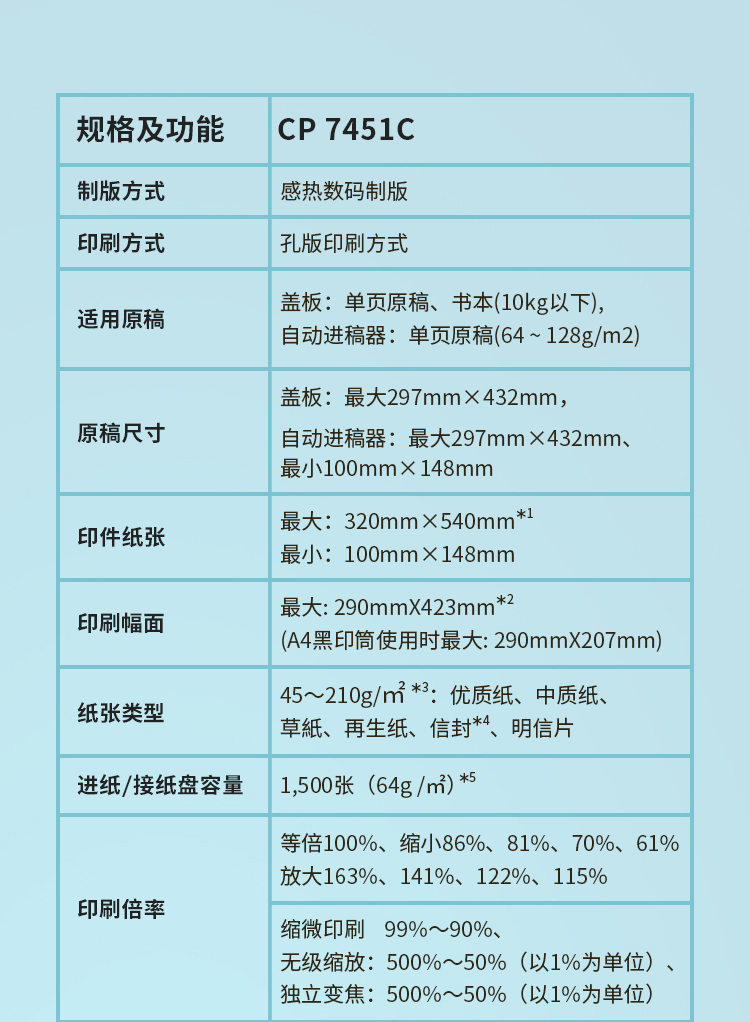 基士得耶 CP 7451C 速印机数码印刷机(主机+盖板+1袋油墨+1卷版纸+工作台+1年保修)单位:台