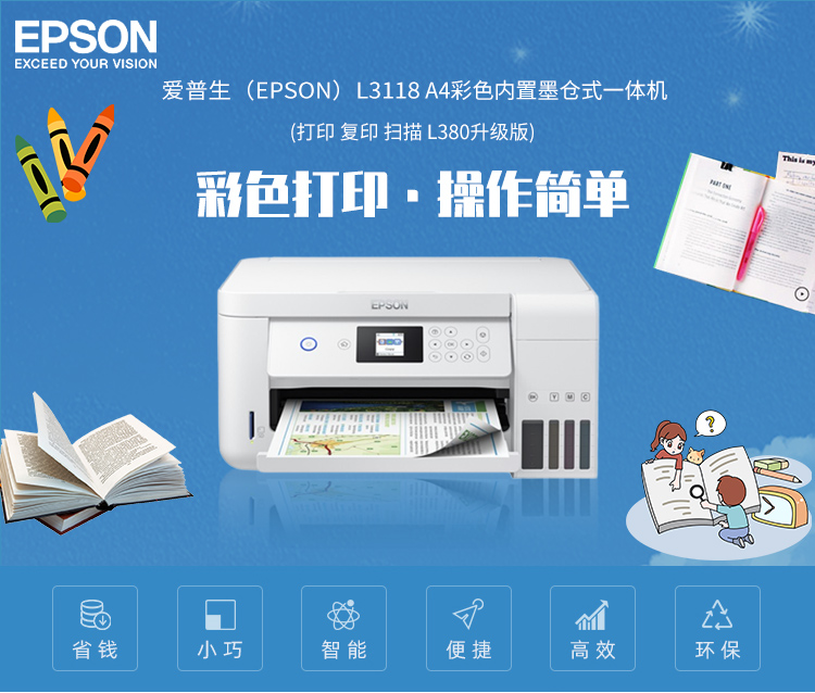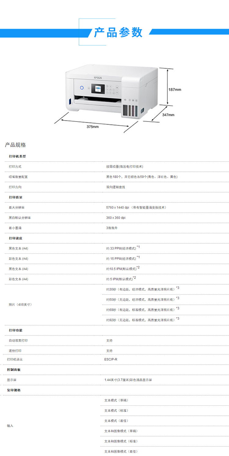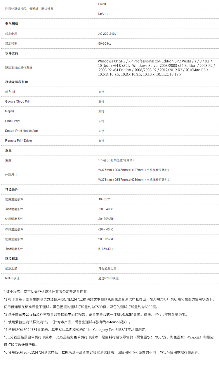 • 商品名称:爱普生 L4163 A4彩色 墨仓式喷墨打印机 无线多功能一体机 白色