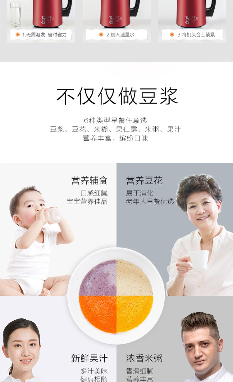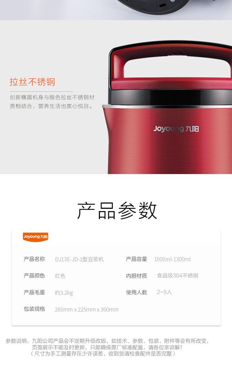 • 商品名称:九阳 DJ13E-JD-1 豆浆机 破壁机 破壁免滤1.3L约时约温立体加热(单位:台)