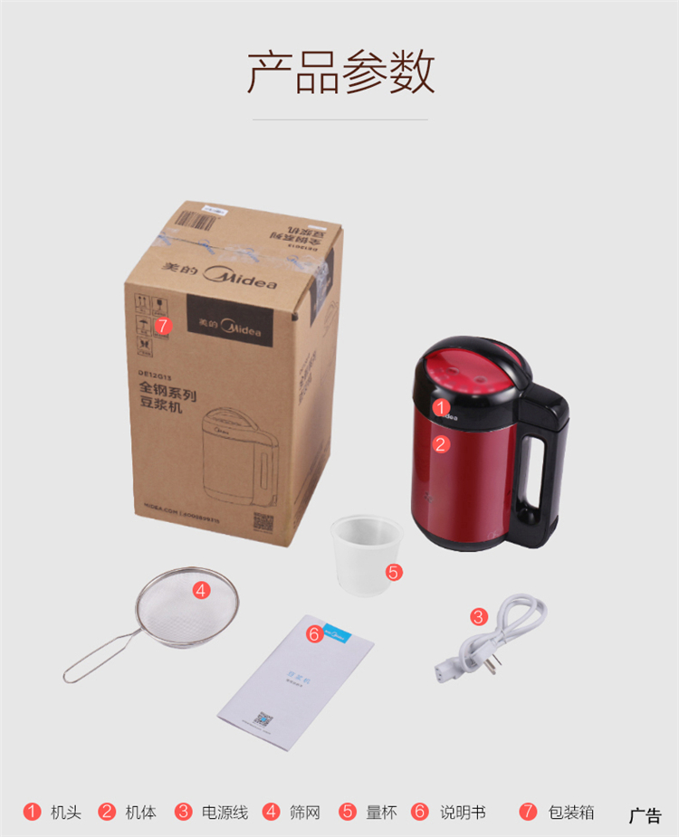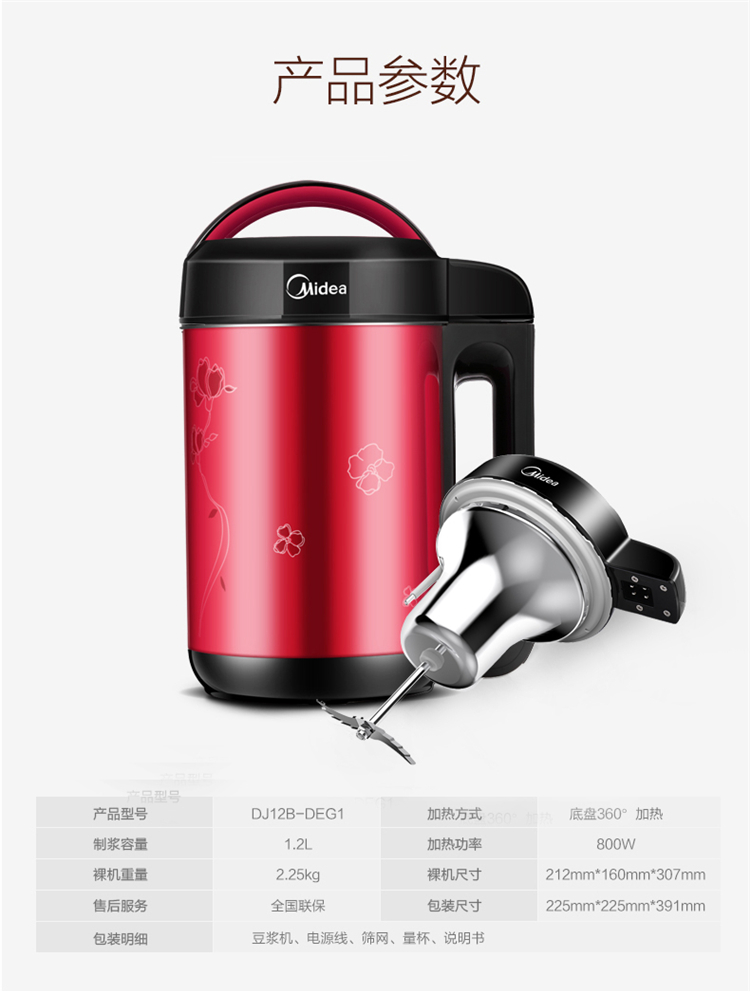 • 商品名称:美的 DJ12B-DEG1(DE12G13) 豆浆机家用双层不锈钢多功能豆汁机易清洗(单位:台)