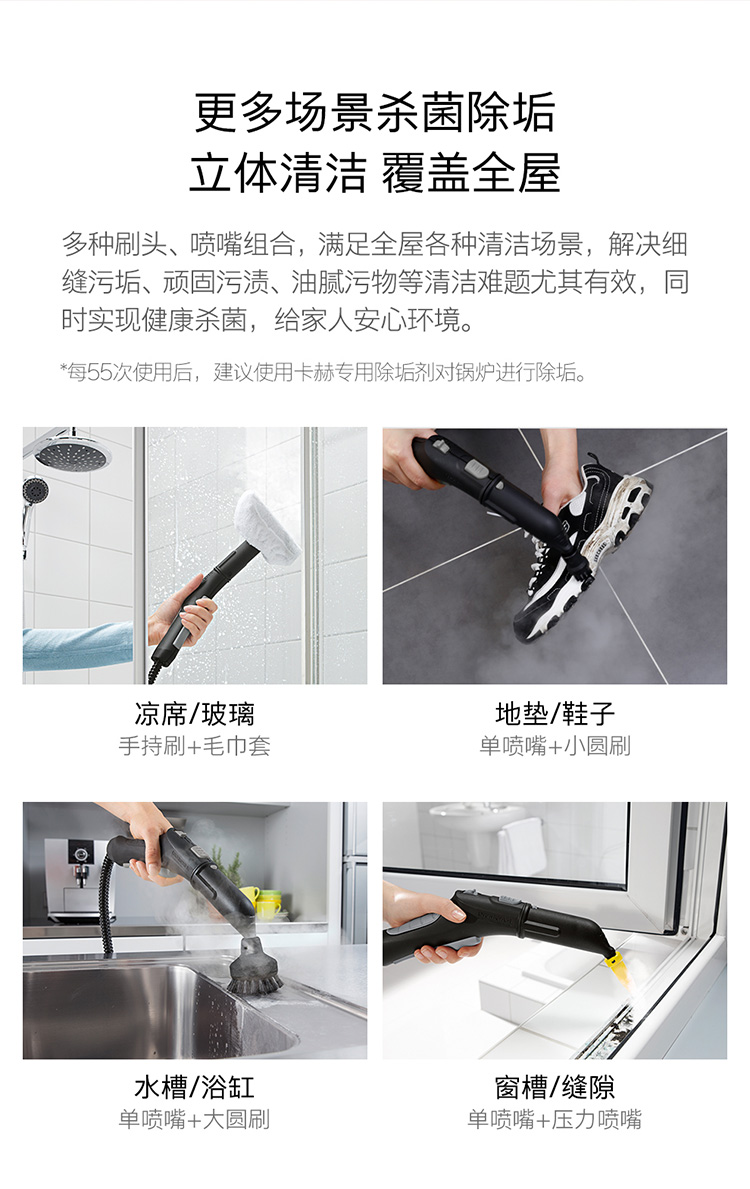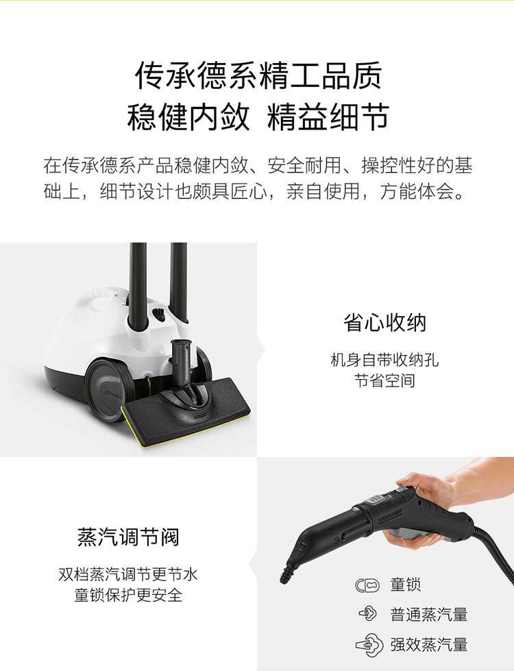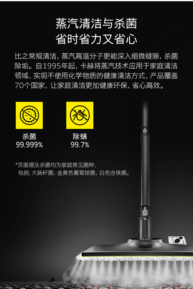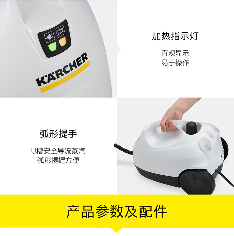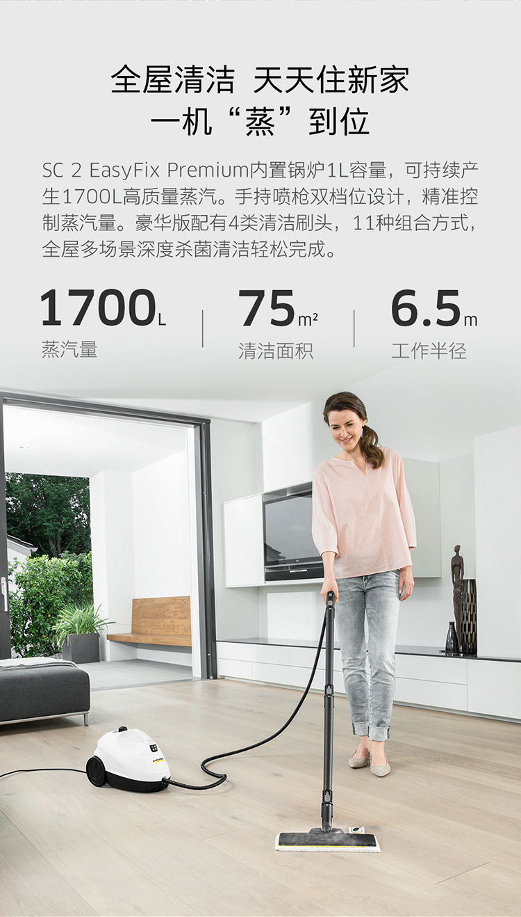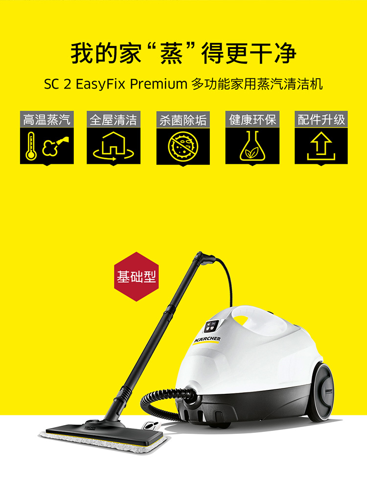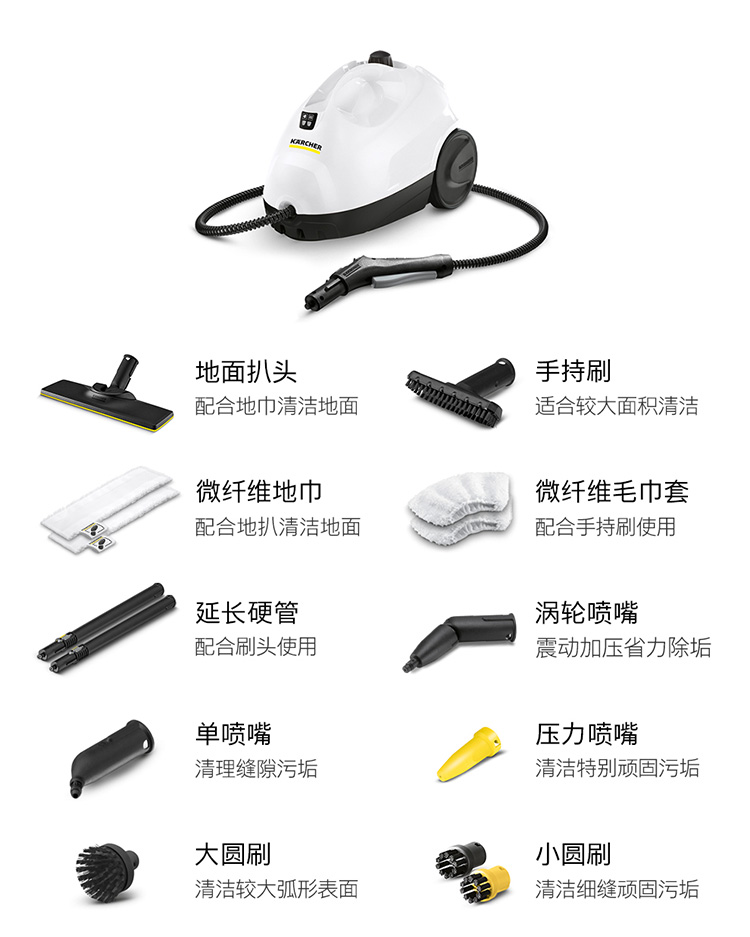 • 商品名称:KARCHER卡赫蒸汽拖把拖地机 家用多功能高压高温蒸汽清洁机 吸尘器伴侣 洗擦地机 德国凯驰集团SC2豪华版(单位:台)