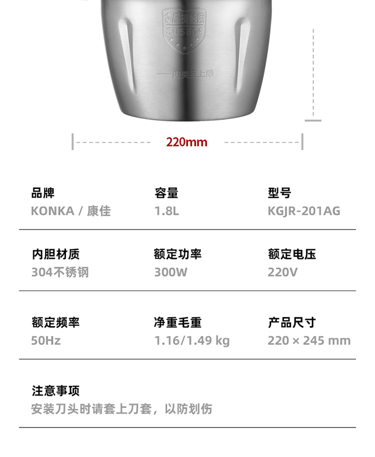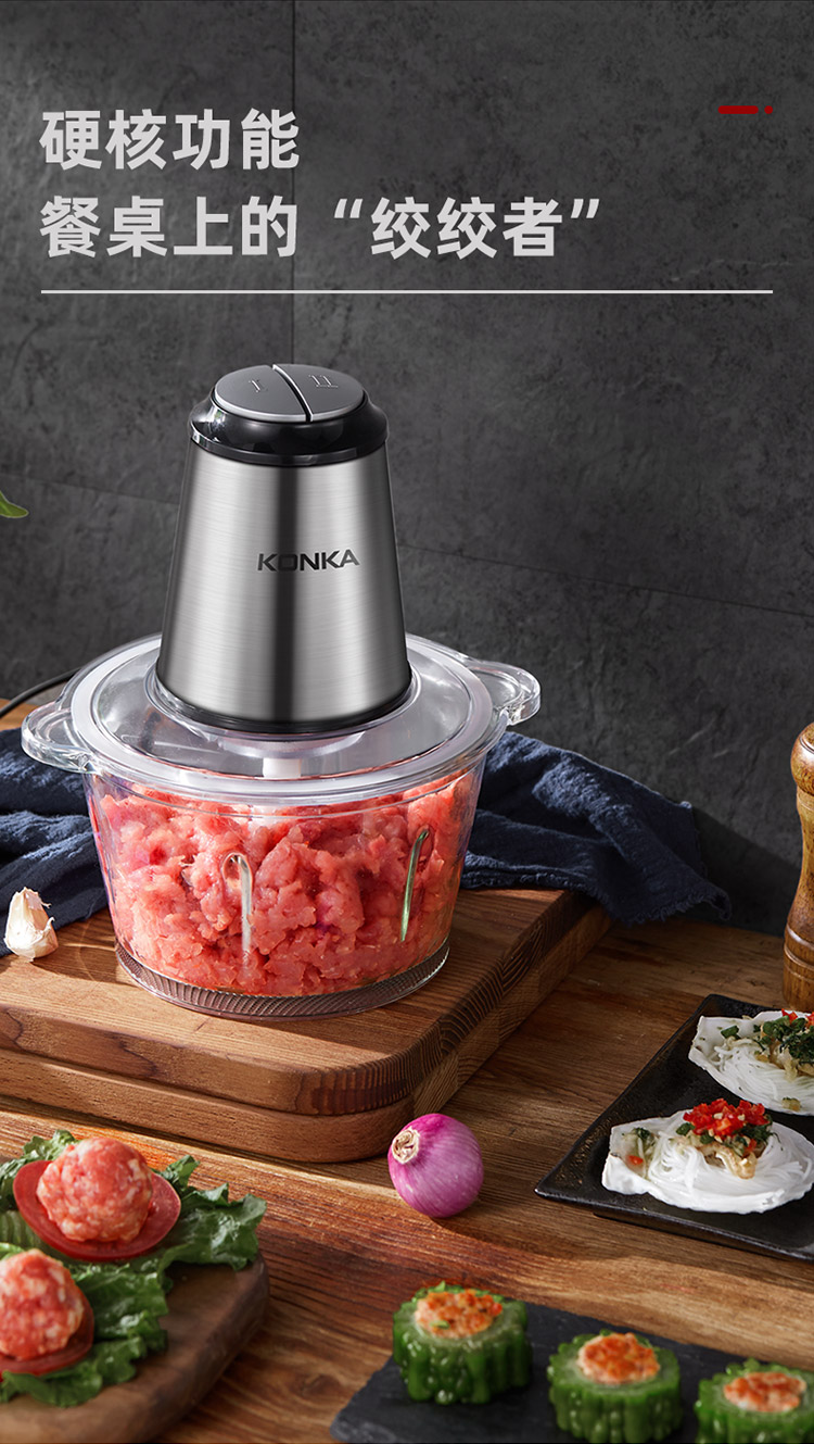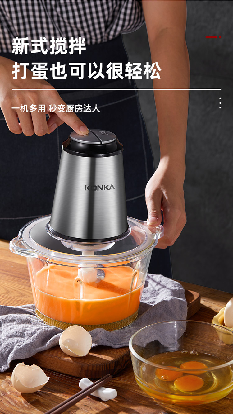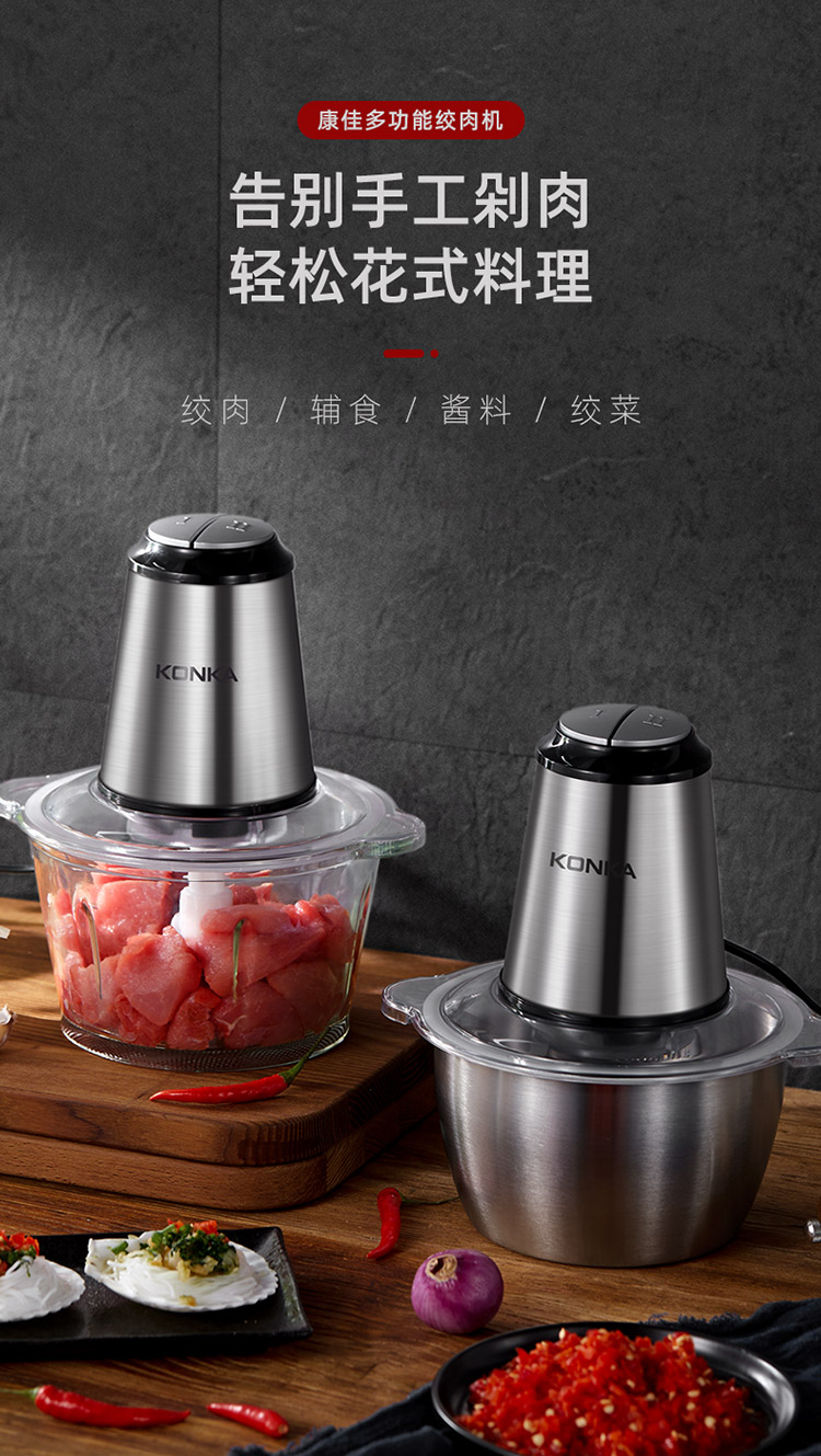 • 商品名称:康佳(KONKA)绞肉机家用电动不锈钢多功能碎肉打肉切碎搅拌料理机不锈钢2.1L KGJR-201AG(单位:个)