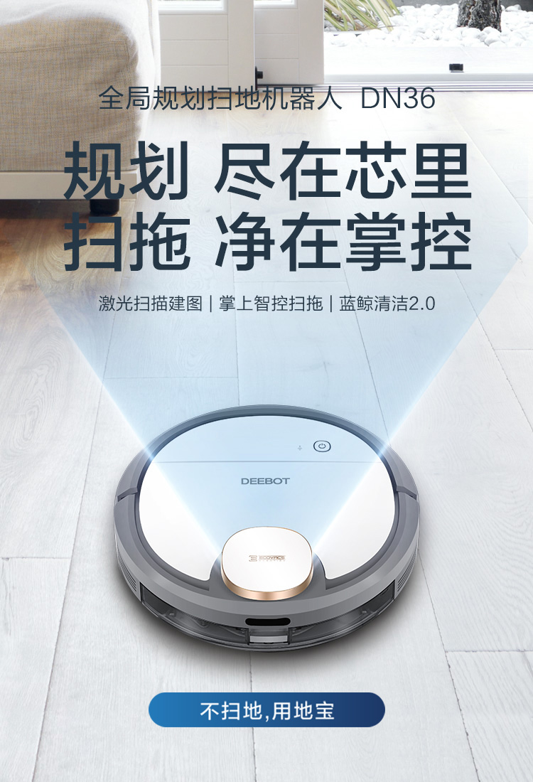 科沃斯(Ecovacs)地宝DN36扫地机器人扫拖一体机智能家用吸尘器激光导航规划全自动洗擦拖地机(单位:台)