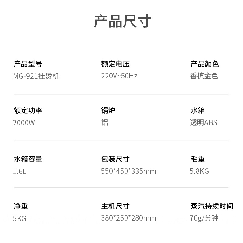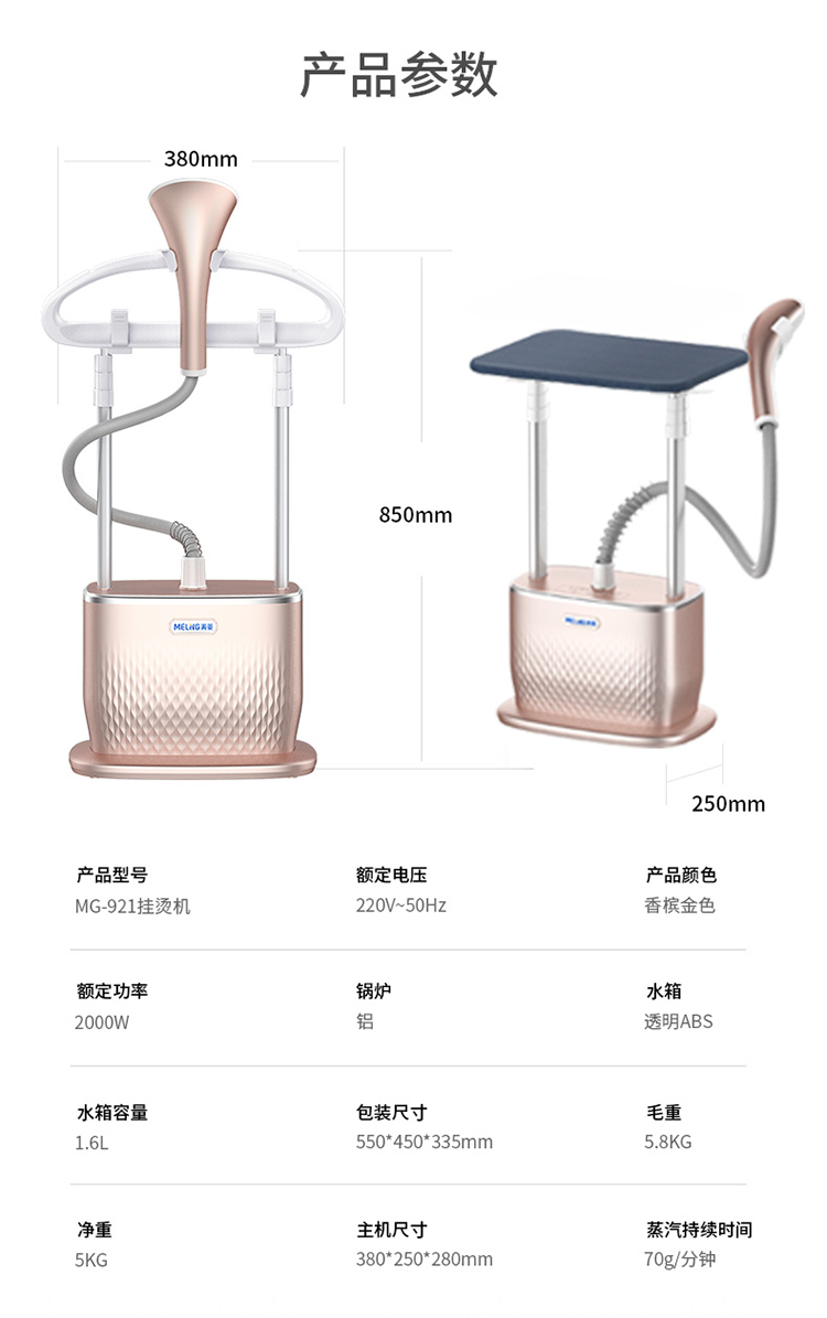 商品名称: 美菱 MG-921 挂烫机 家用双杆 可卧可立 家用手持/挂式电熨斗 蒸汽熨烫机(单位:台)