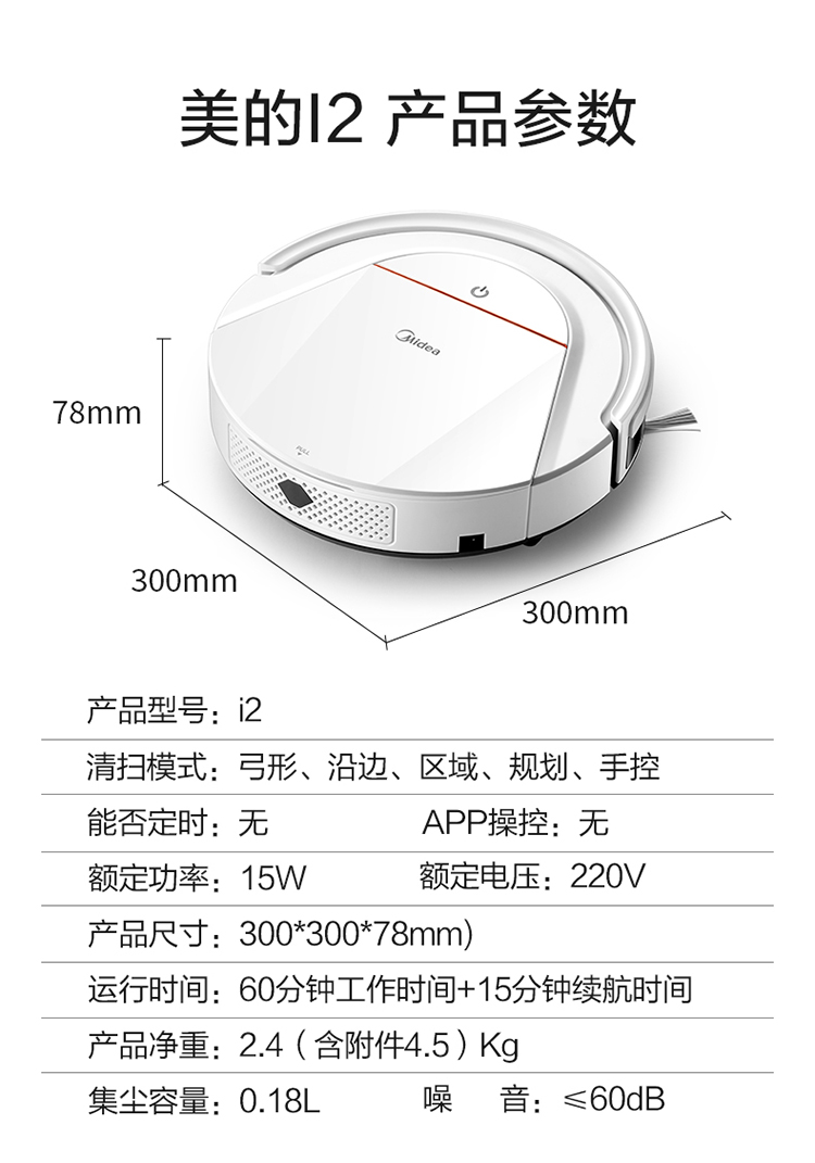 • 商品名称:美的(Midea)扫地机器人i2 扫拖一体机智能家用吸尘器 全自动智能扫地机(单位:台)