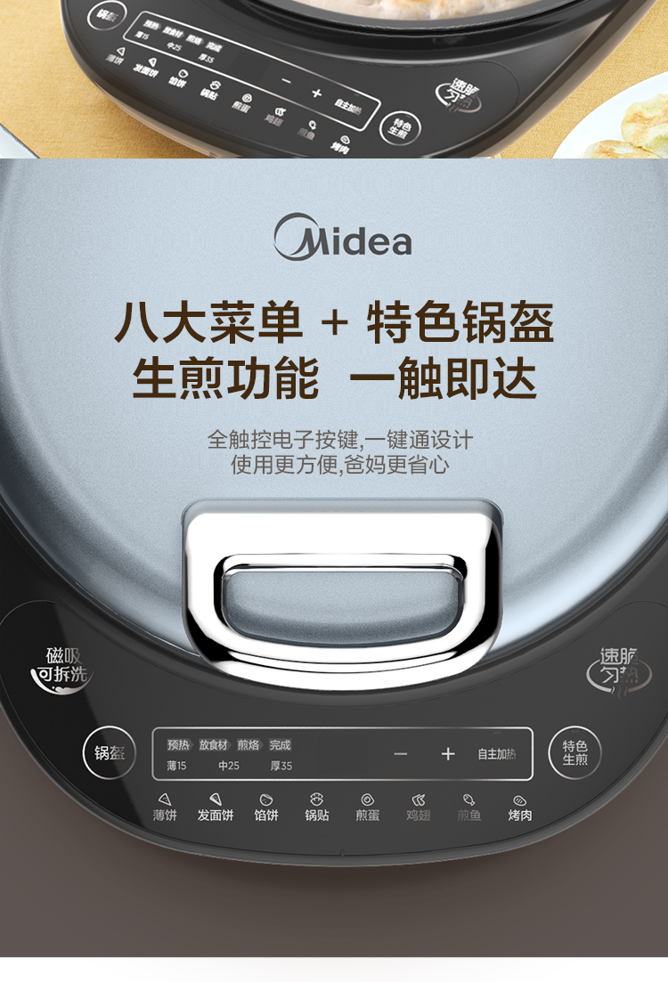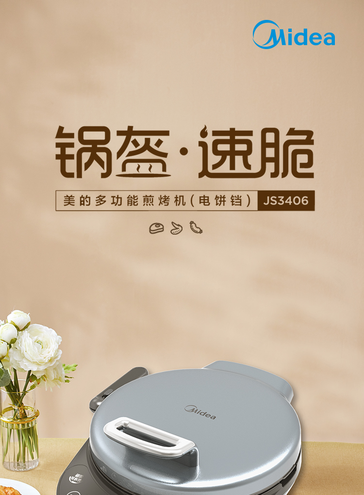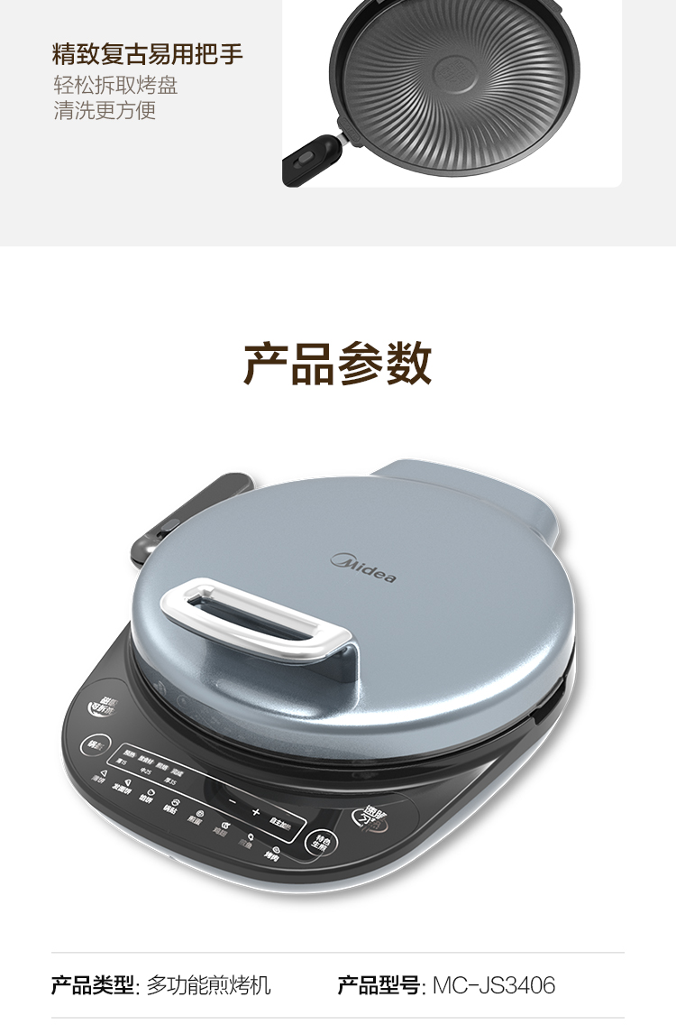 • 商品名称:美的 MC-JS3406 电饼铛家用早餐机煎饼铛煎烤机双面加热烙饼锅35MM加深烤盘(单位:个)