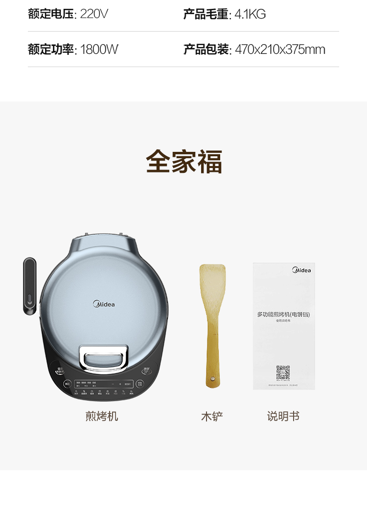 商品名称: 美的 MC-JS3406 电饼铛家用早餐机煎饼铛煎烤机双面加热烙饼锅35MM加深烤盘(单位:个)