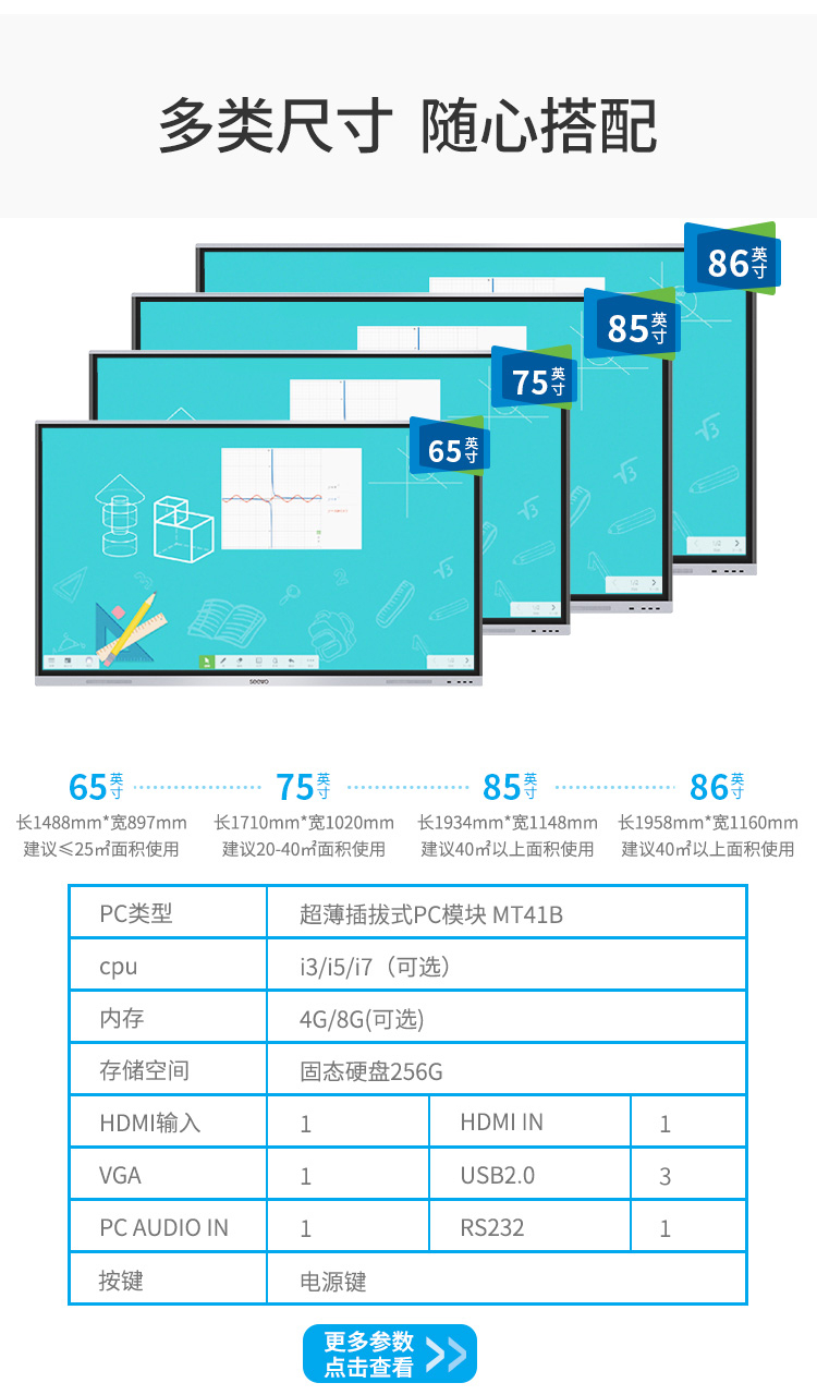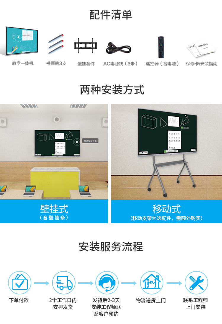 • 商品名称:希沃 MC08FEA i3版 教学一体机 交互智能平板多媒体幼儿园培训机构红外触摸屏触控一体机