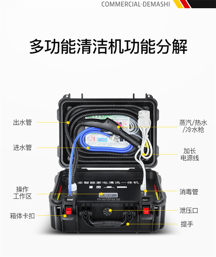 • 商品名称:德玛仕 455*210*340mm 经济款 高温高压蒸汽清洁机 多功能一体机商用 黑色(单位:台)