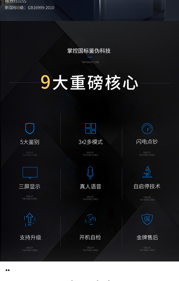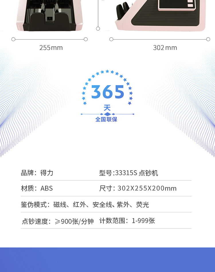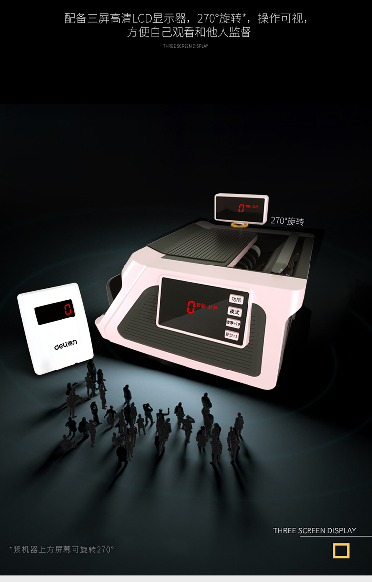 • 商品名称:得力(deli)33315 新版人民币B类点钞机 智能三屏语音验钞机(单位:台)