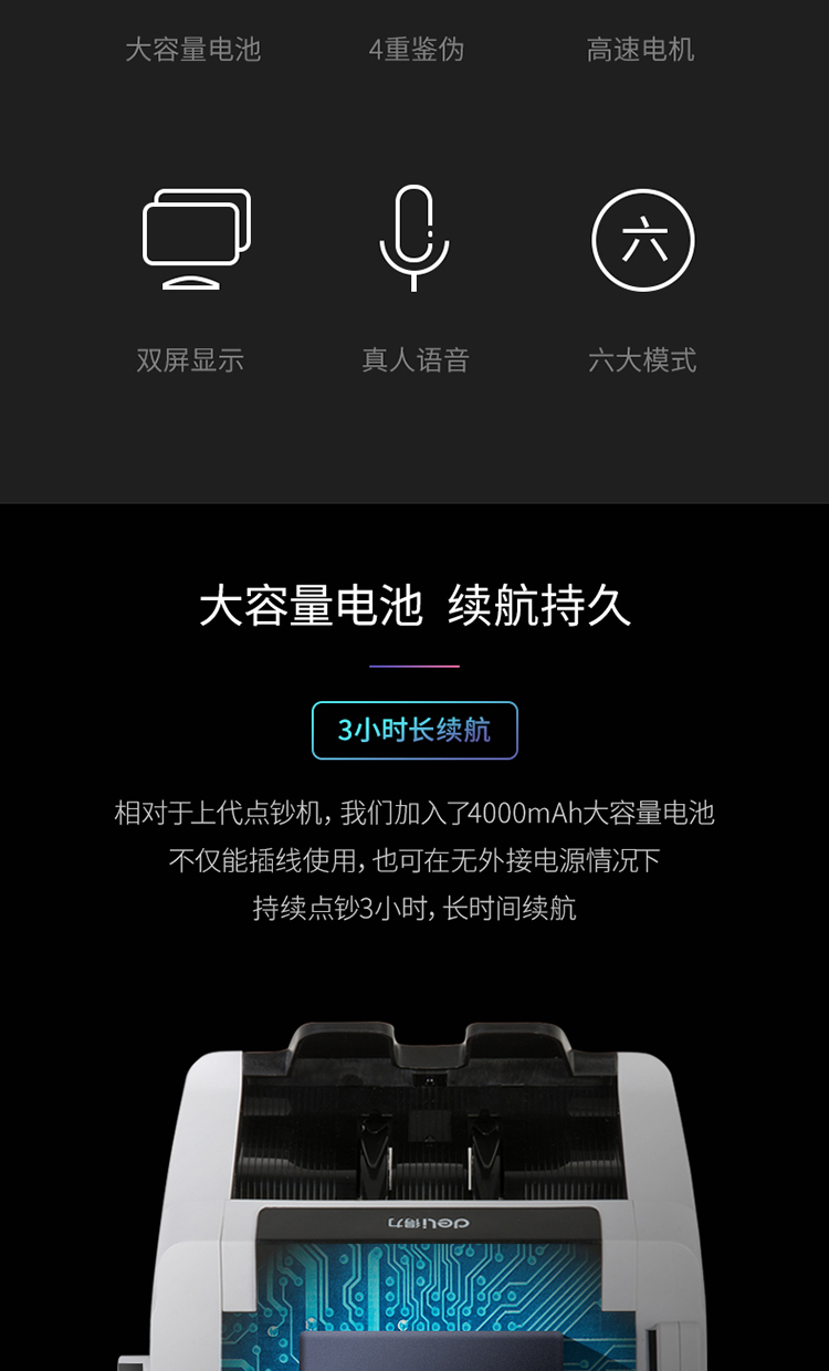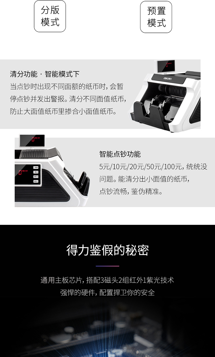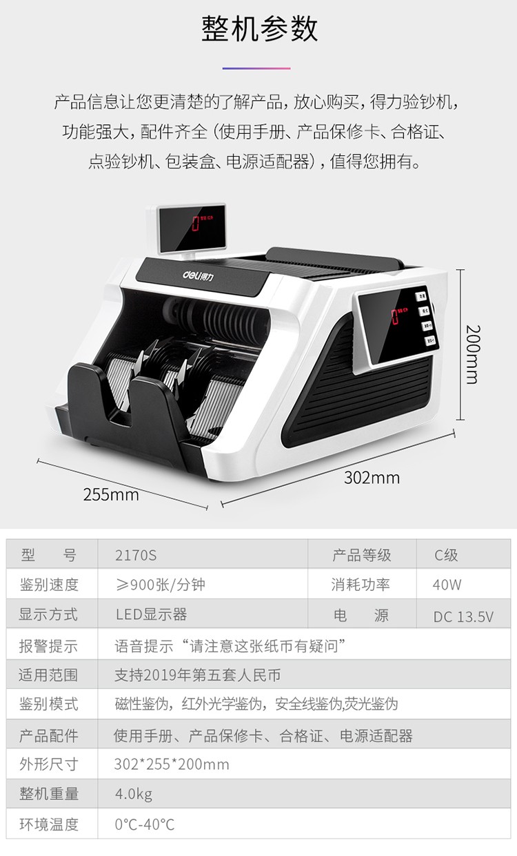 • 商品名称:得力(deli)2170 双电源智能语音点钞机 可充电外带人民币验钞机 支持第五套新老版混点(单位:台)