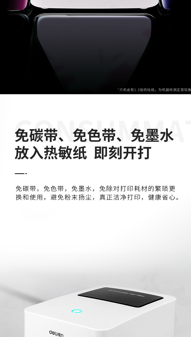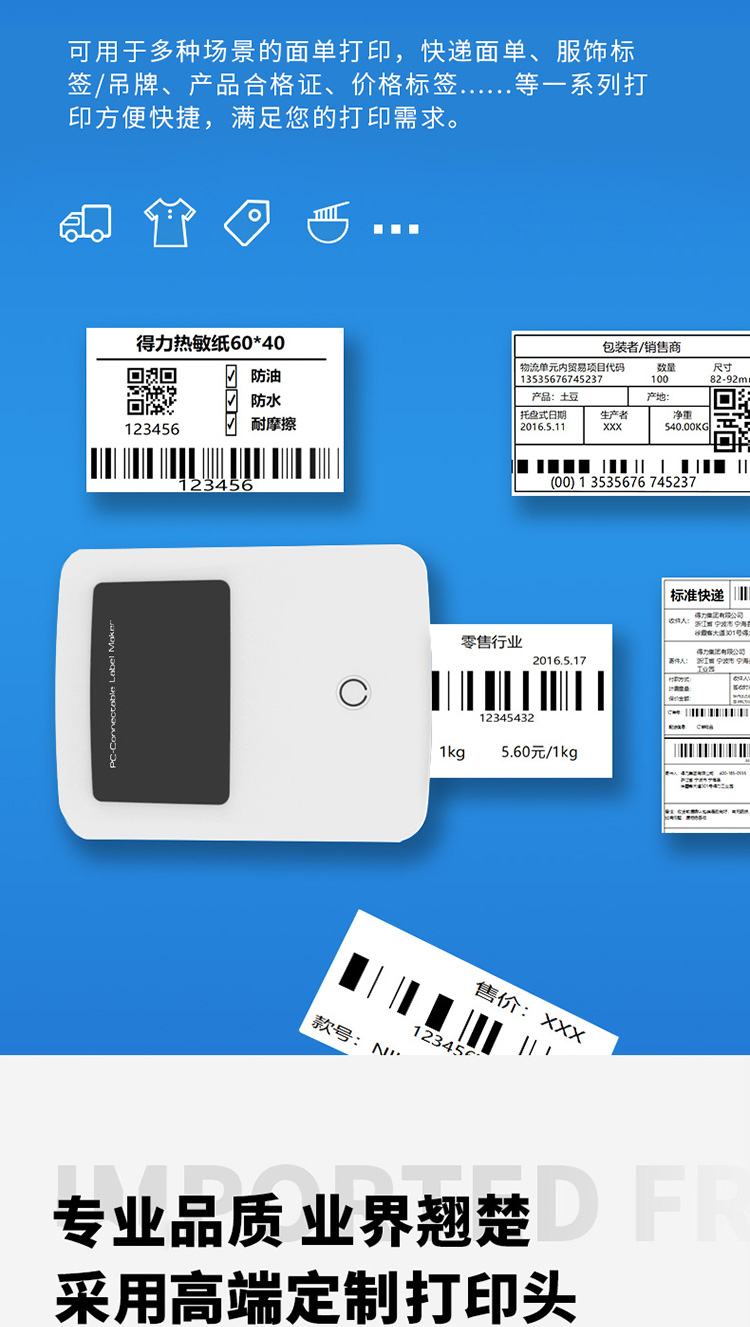 • 商品名称:得力 DL-720C 3寸蓝牙电子面单条码标签打印机商用 热敏快递单打印机不干胶二维码 白色(单位:台)