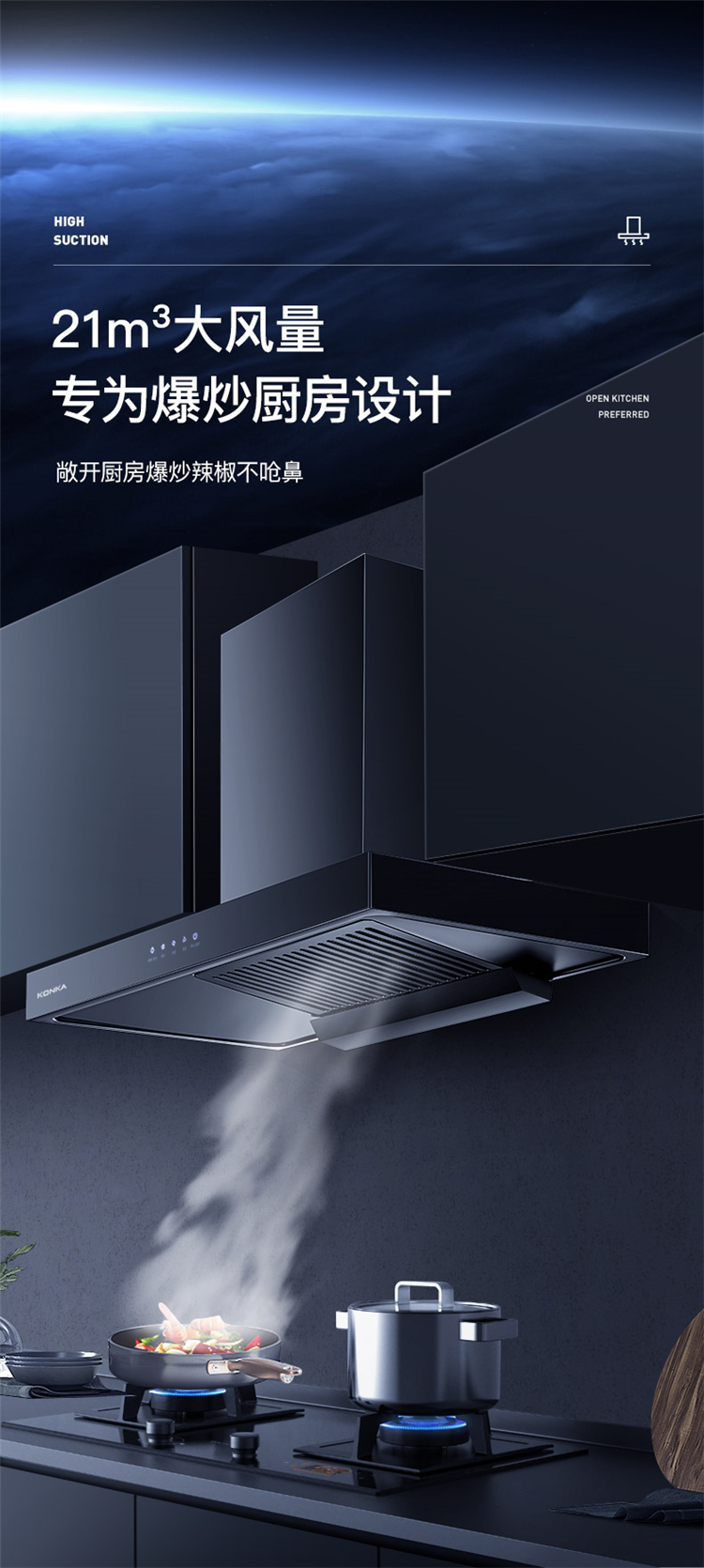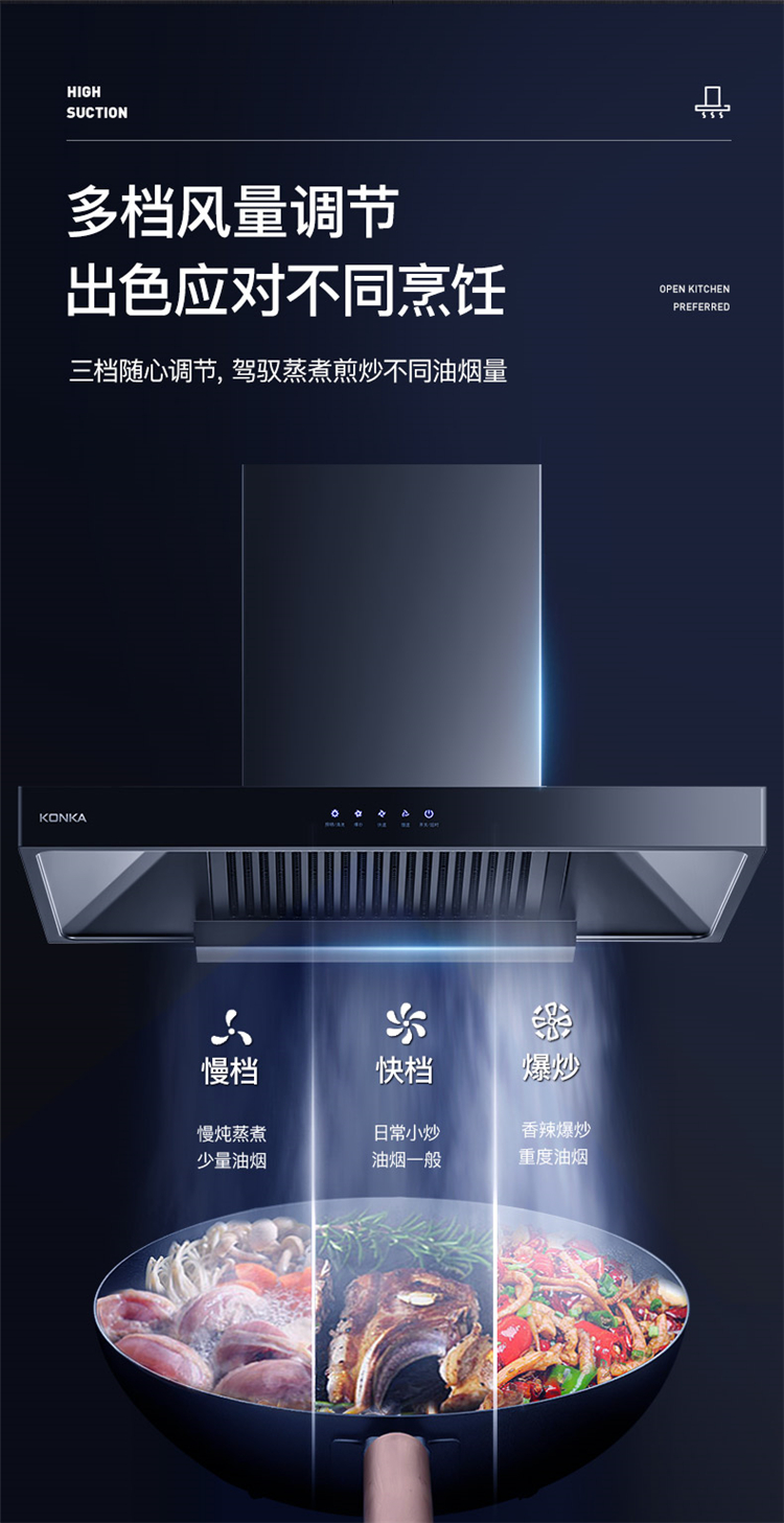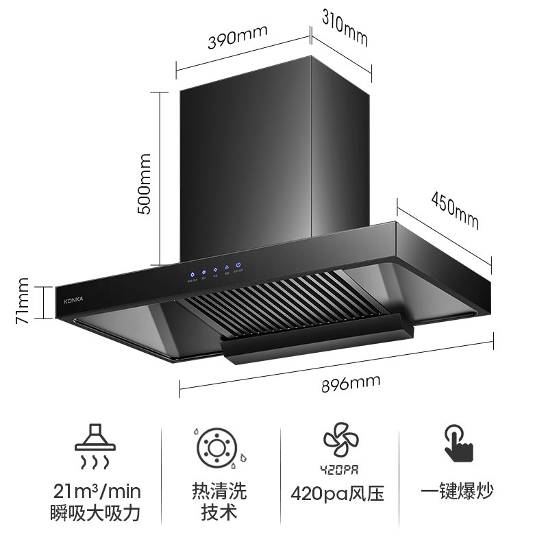 • 商品名称:康佳 KT53 21立方爆炒风量自动清洗吸油烟机 欧式大吸力脱排油烟机(单位:台)