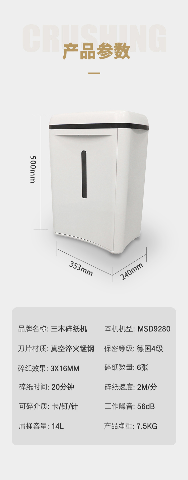 • 商品名称:三木 MSD9280 锰钢侠系列碎纸机 白(单位:台)