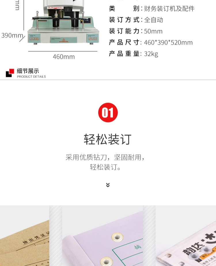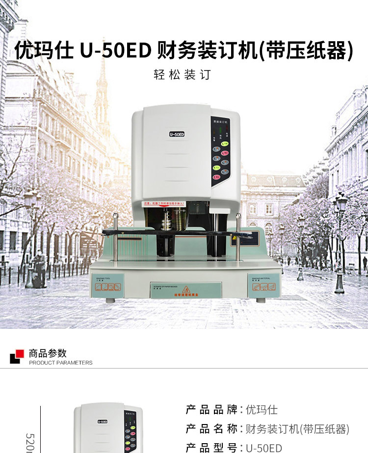 • 商品名称:优玛仕 U-50ED 财务装订机(带压纸器) 配(单位:台)