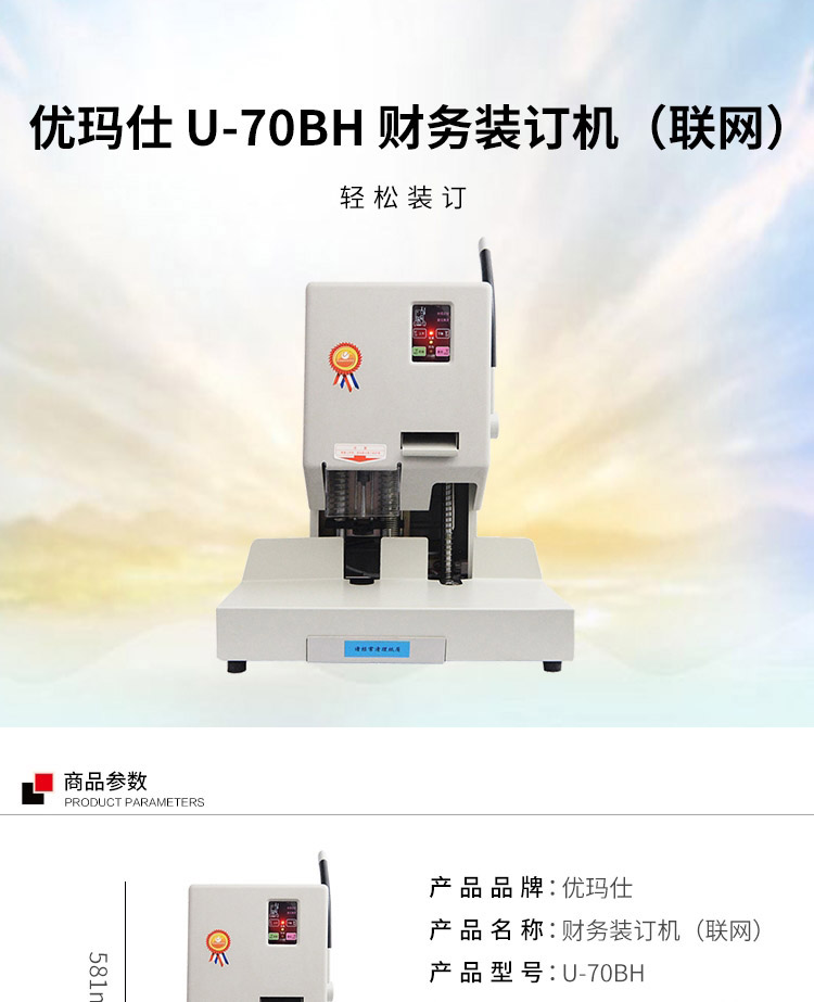 • 商品名称:优玛仕 U-70BH 财务装订机(联网) 配(单位:台)