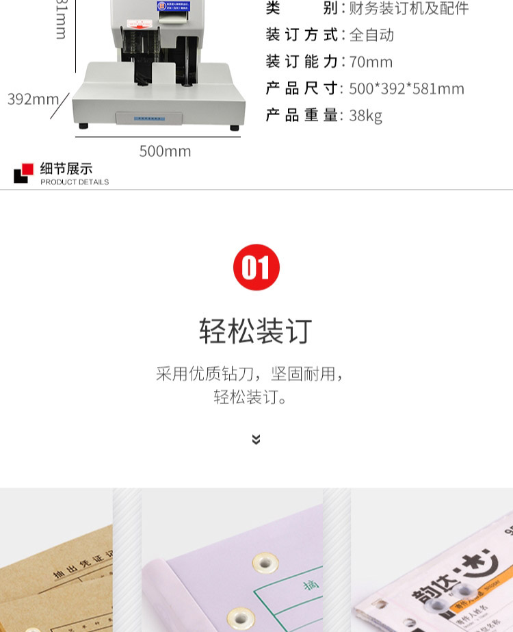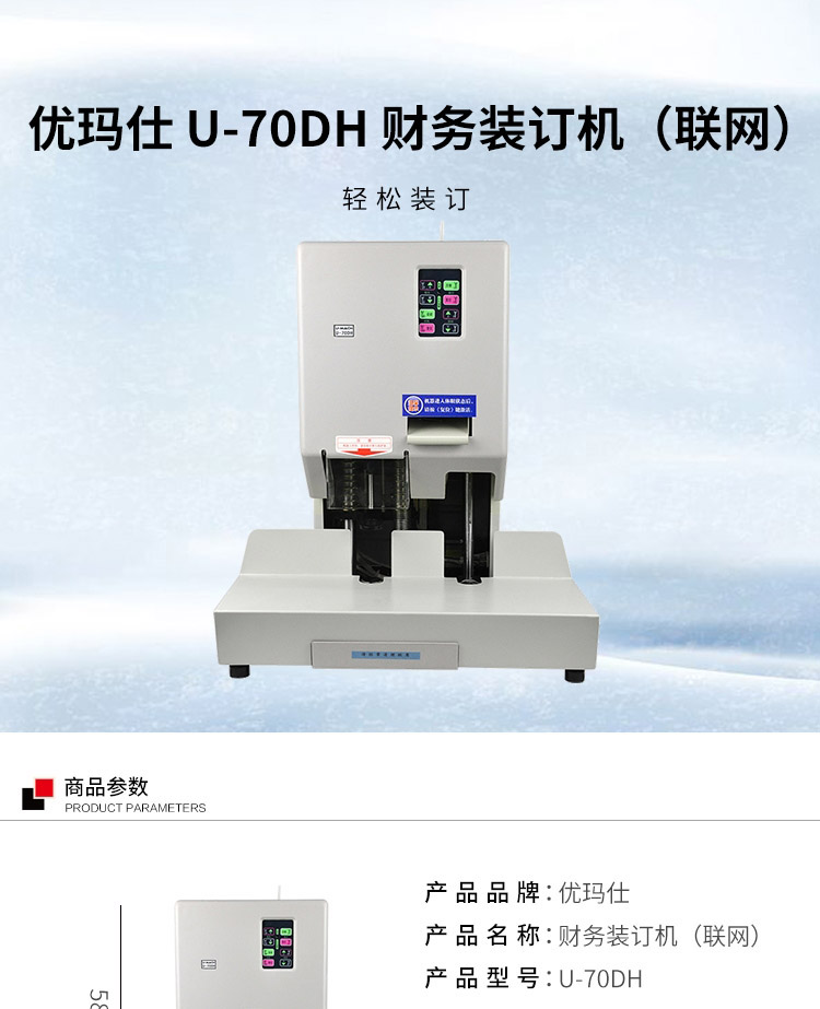 • 商品名称:优玛仕 U-70DH 财务装订机(联网) 配(单位:台)