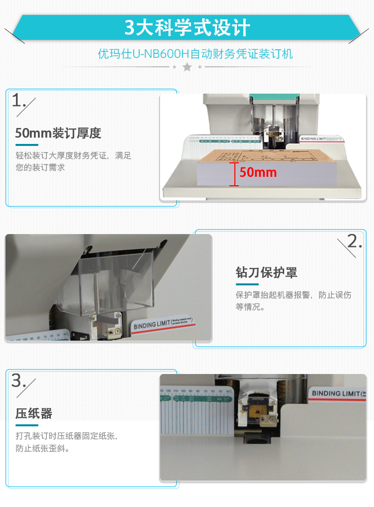 商品名称: 优玛仕 U-NB600H 财务装订机 配(单位:台)