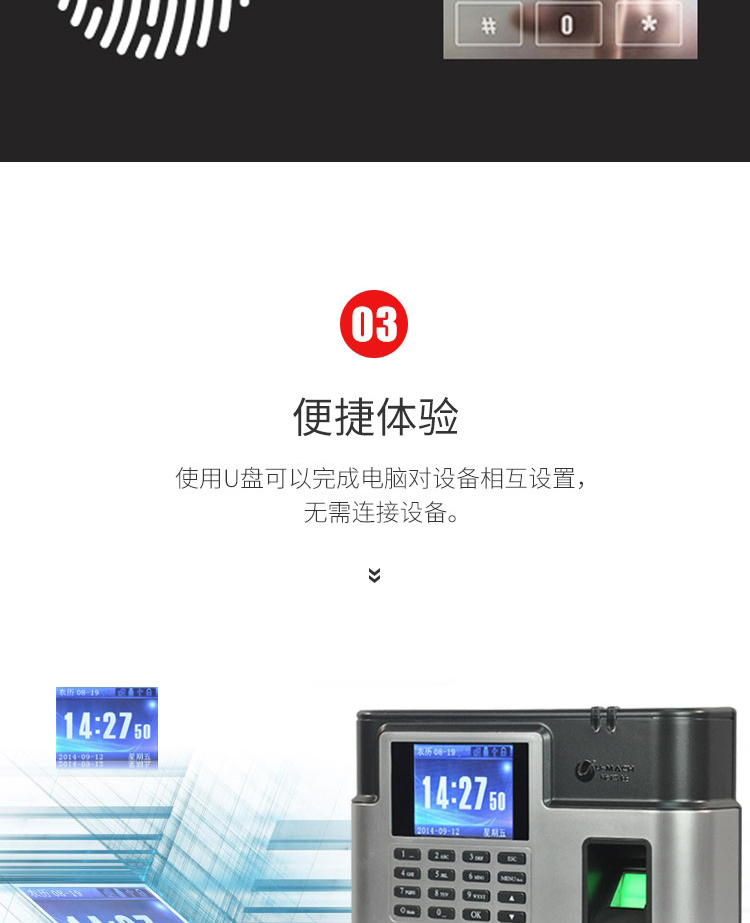 • 商品名称:优玛仕 U-Z6 指纹密码双认证考勤机 配(单位:台)