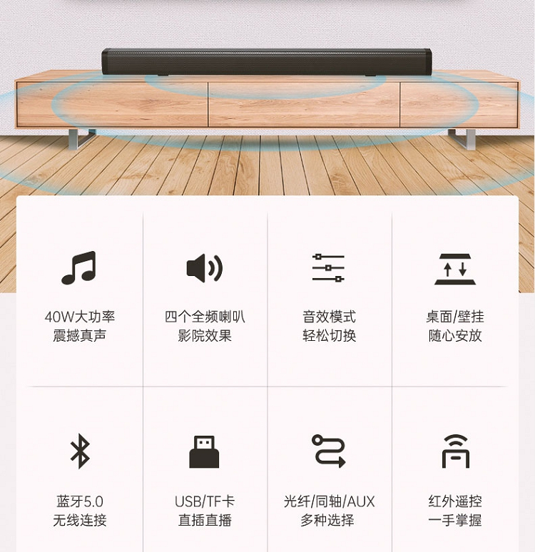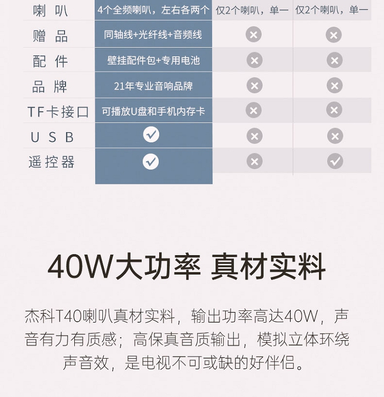 办公设备  > 会议/演示设备  > 音视频设备  >  杰科  >  杰科 T40 一体式电视音响 黑色(单位:台)