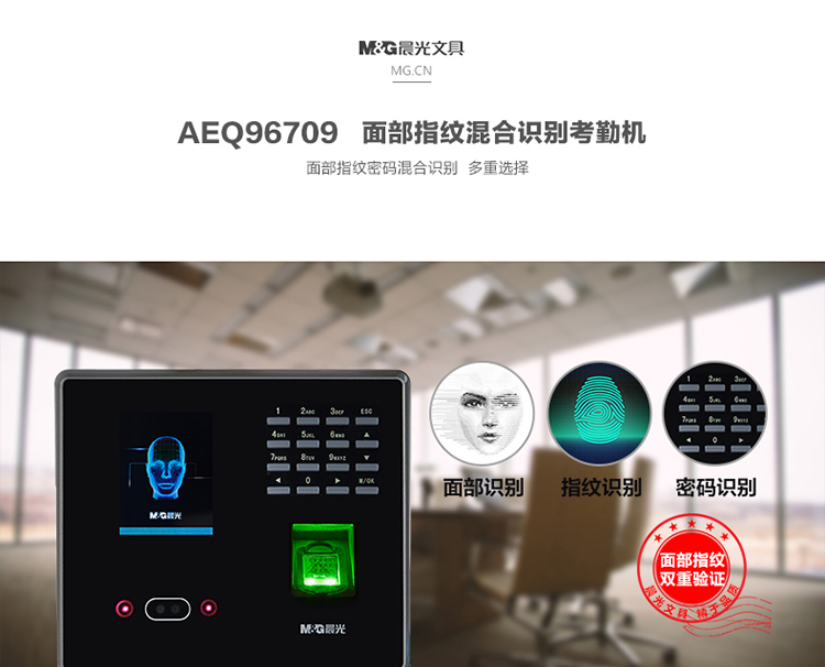 办公设备  > 扫描设备  > 考勤机  >  晨光/M&G  >  晨光 AEQ96709 面部指纹混合识别考勤机 本色(单位:台)