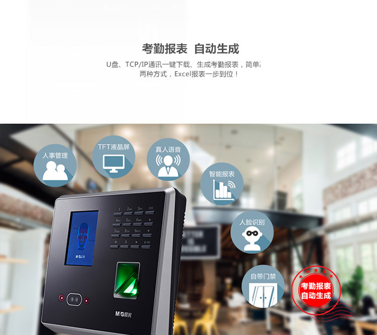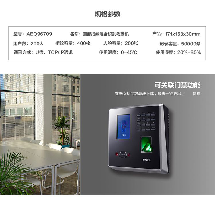 • 商品名称:晨光 AEQ96709 面部指纹混合识别考勤机 本色(单位:台)