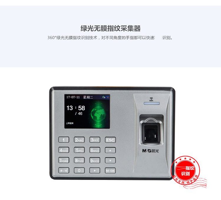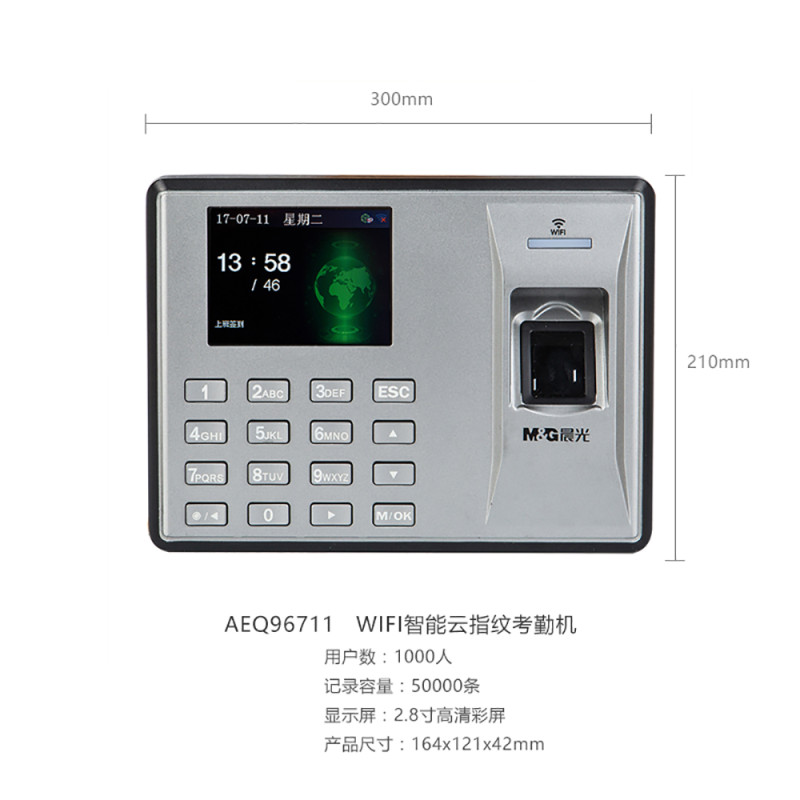 办公设备  > 扫描设备  > 考勤机  >  晨光/M&G  >  晨光 AEQ96711 WiFi智能云指纹考勤机 本色(单位:台)