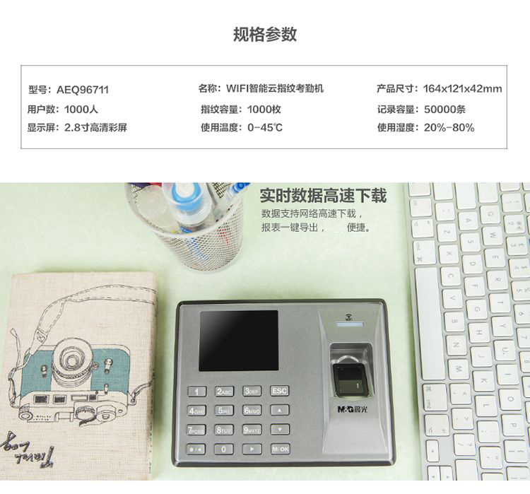 商品名称: 晨光 AEQ96711 WiFi智能云指纹考勤机 本色(单位:台)