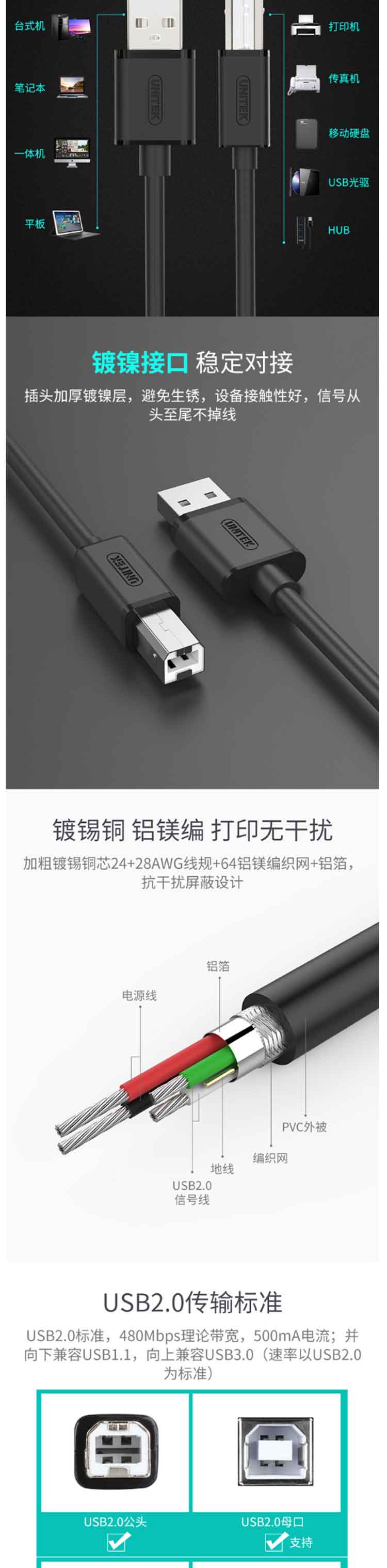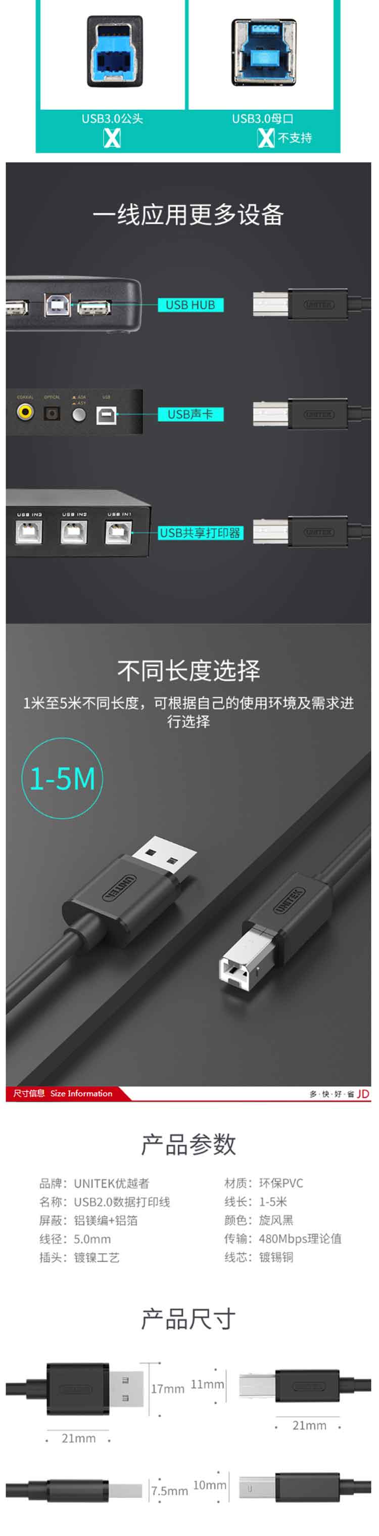 • 商品名称:优越者 Y-C420EBK 3米高速USB打印机线 黑色(单位:个)
