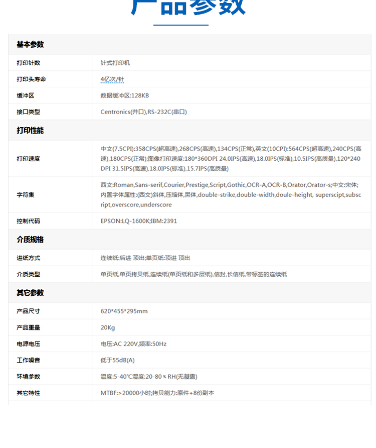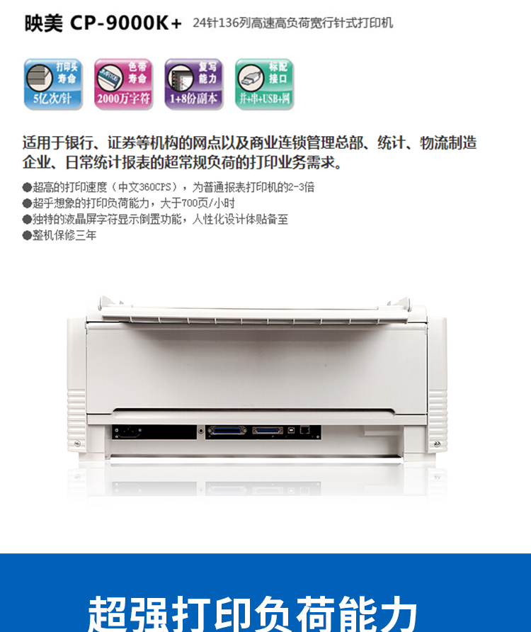 • 商品名称:映美 CP-9000K+ 24针高速高负荷宽行针式打印机 (单位:台)