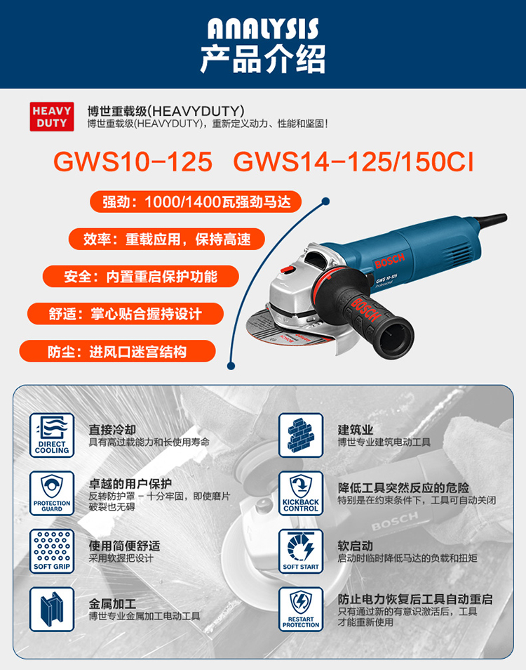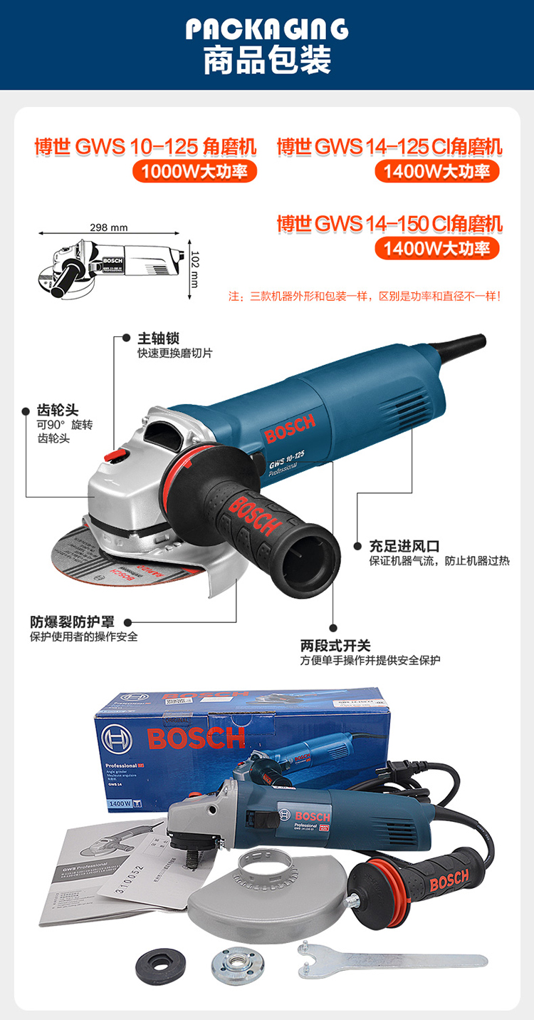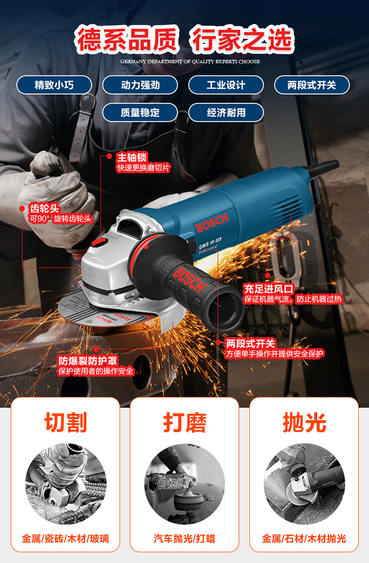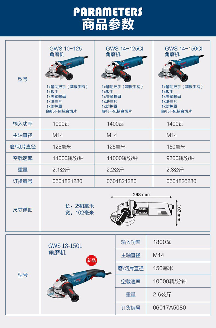 • 商品名称:博世 GWS10-125 电动角磨机 蓝色(单位:台)