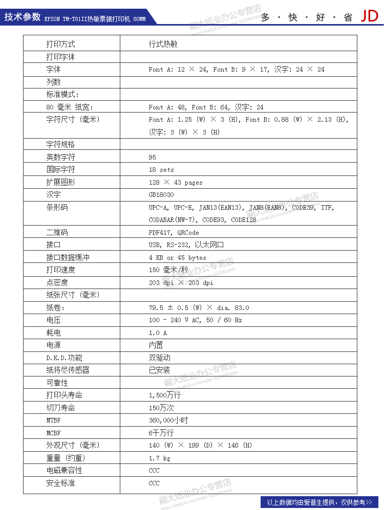商品名称: 爱普生 TM-T82II 热敏打印机 黑色 (单位:台)