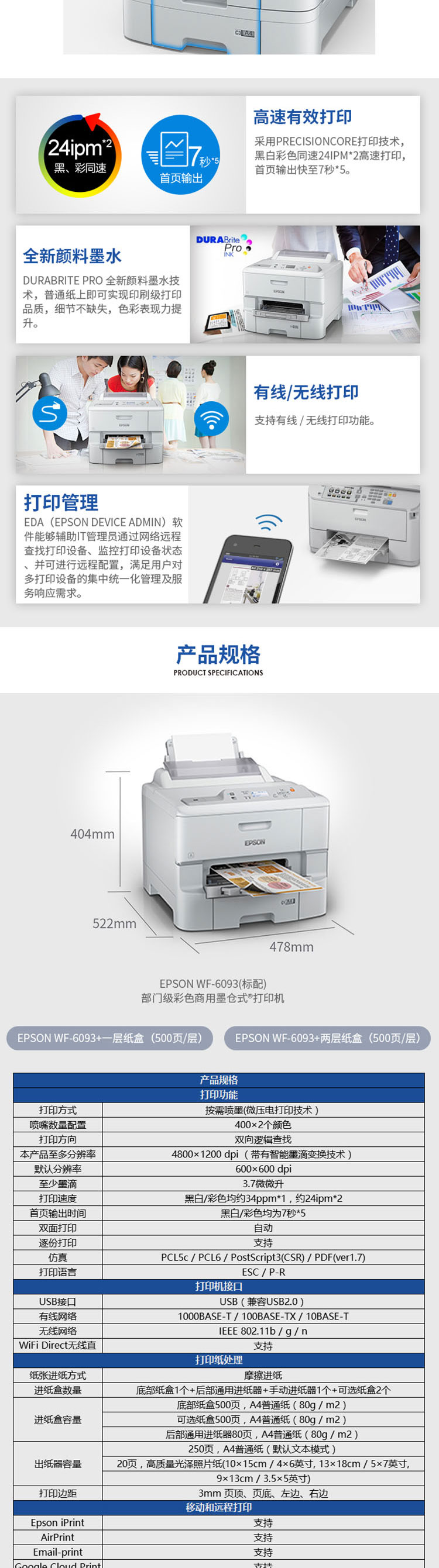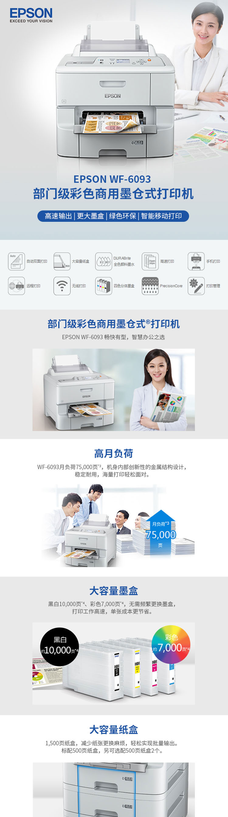 • 商品名称:爱普生 WF-6093 彩色商用墨仓式打印机 白色(单位:台)