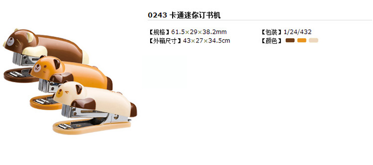 • 商品名称:得力 0243 10#卡通迷你订书机 彩色(单位:台)