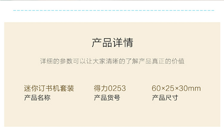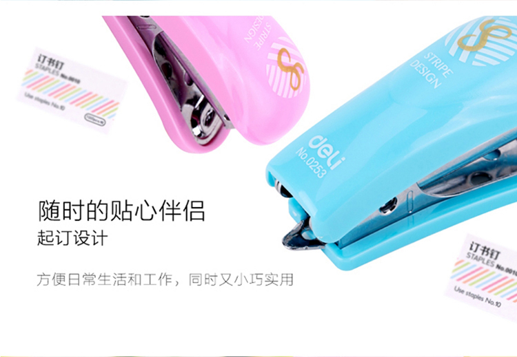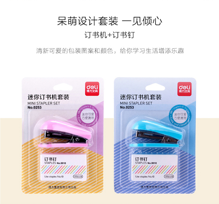 • 商品名称:得力 0253 迷你学生订书机套装(订书机+订书钉) 10# 配色 (单位:套)