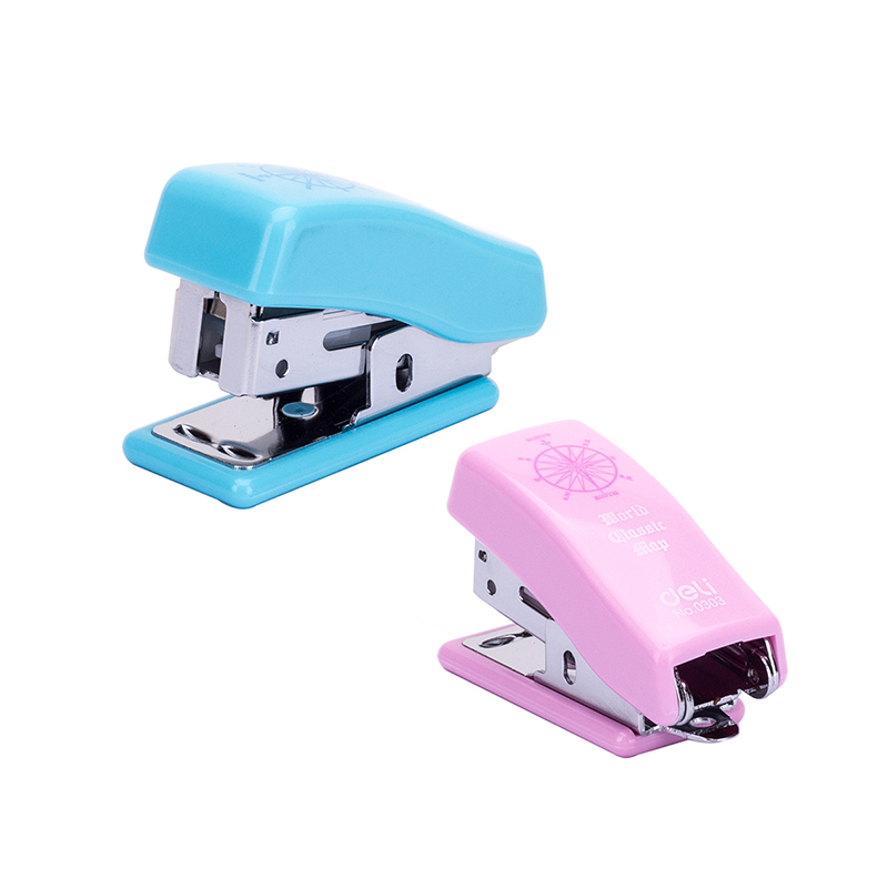 商品名称: 得力 0303 迷你订书机 12# 12页 彩色 单位:个