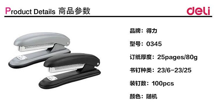 • 商品名称:得力 0345 12#手握式订书机 彩色(单位:台)