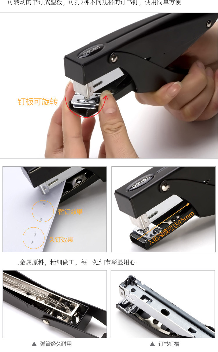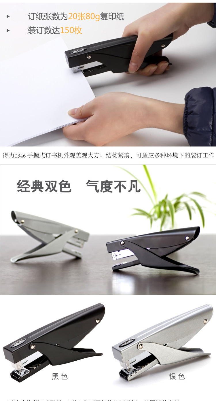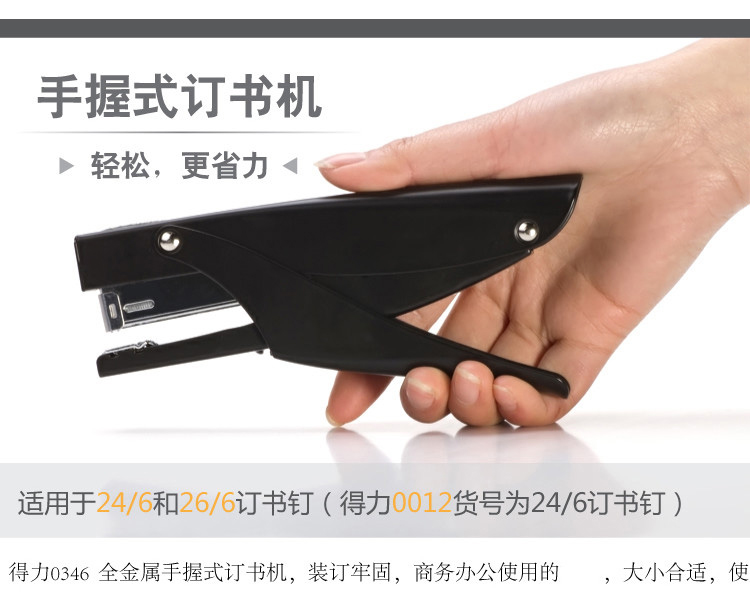 • 商品名称:得力 0346 手握式金属耐用订书机 12# 黑色 (单位:个)