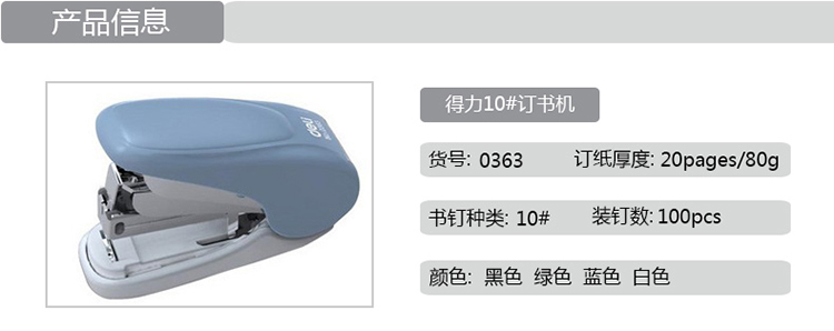 • 商品名称:得力 0363 省力平钉订书机 彩色(单位:台)