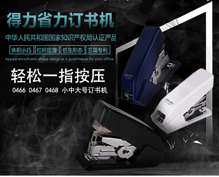 • 商品名称:得力 0468 大号省力结构订书机 12# 蓝色 (单位:个)