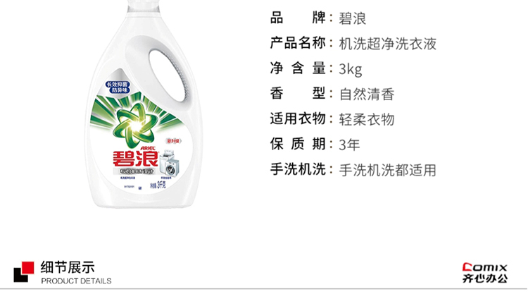 • 商品名称:碧浪 机洗超净洗衣液 3Kg 单位:瓶