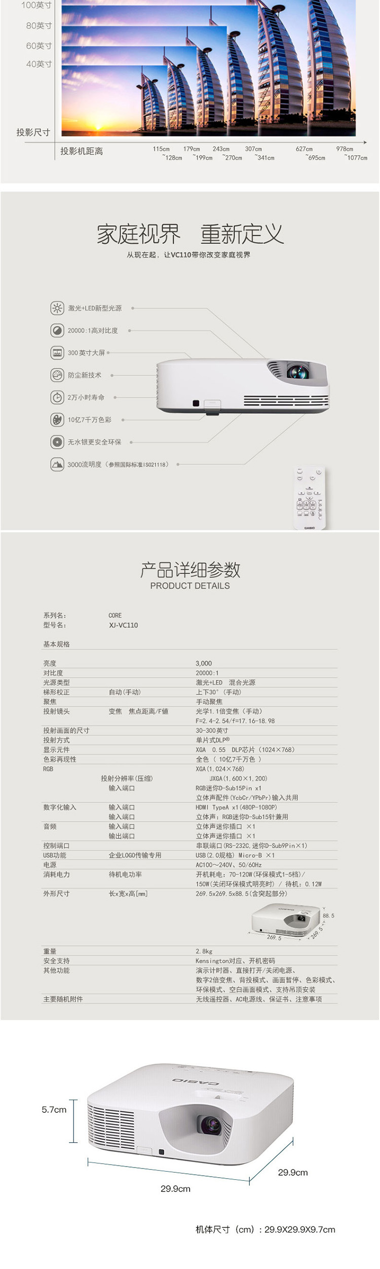 商品名称: 卡西欧 XJ-VC110 激光商务投影机(吊架安装/调试)(单位:台)