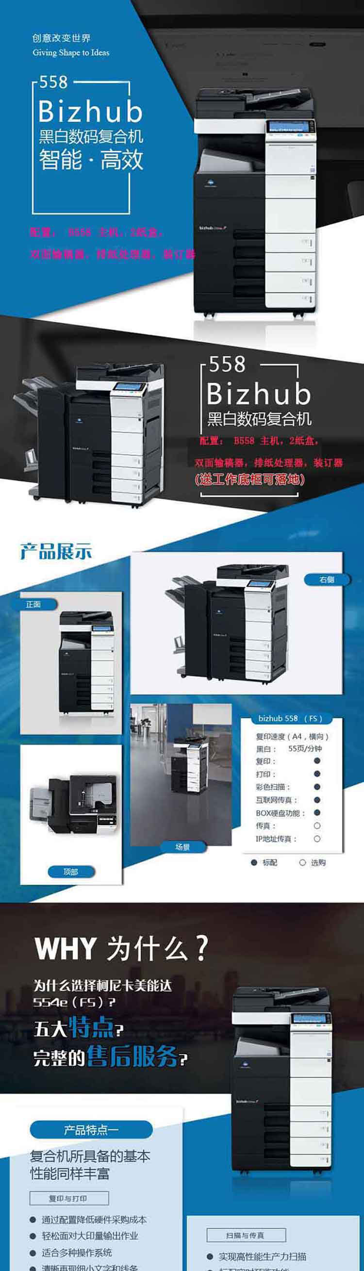 商品名称: 柯尼卡美能达 bizhub 558 A3数码复合机(双纸盒/双面器/双面送稿器/加配内钉FS-533/PDF编辑软件/工作台/四年维保) (单位:台)
