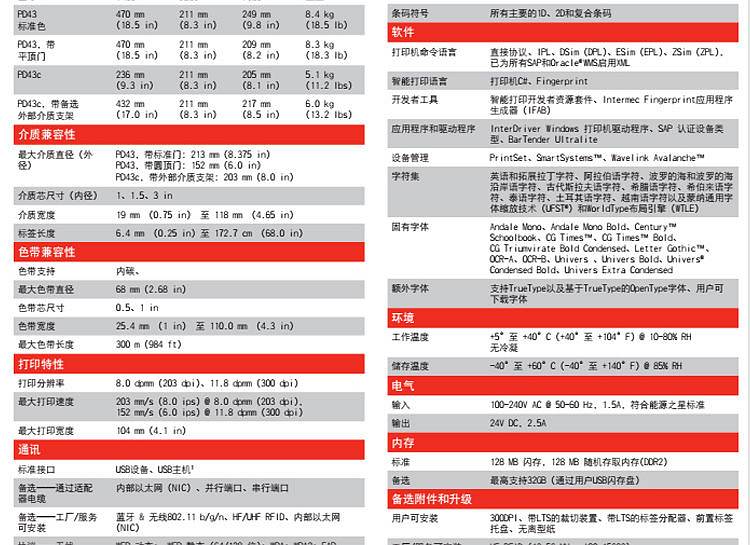 • 商品名称:霍尼韦尔 PD43-300dpi 条码打印机 (单位:台)