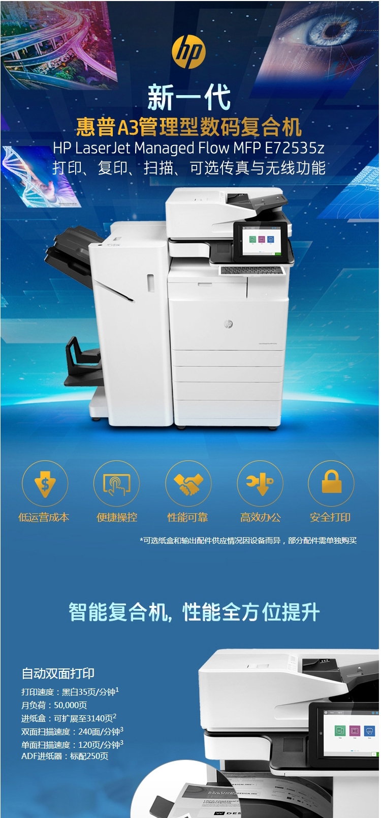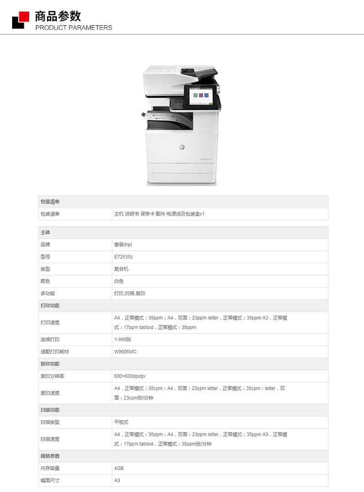 • 商品名称:惠普 E72535z A3 黑白中速数码复合机(单位:台)